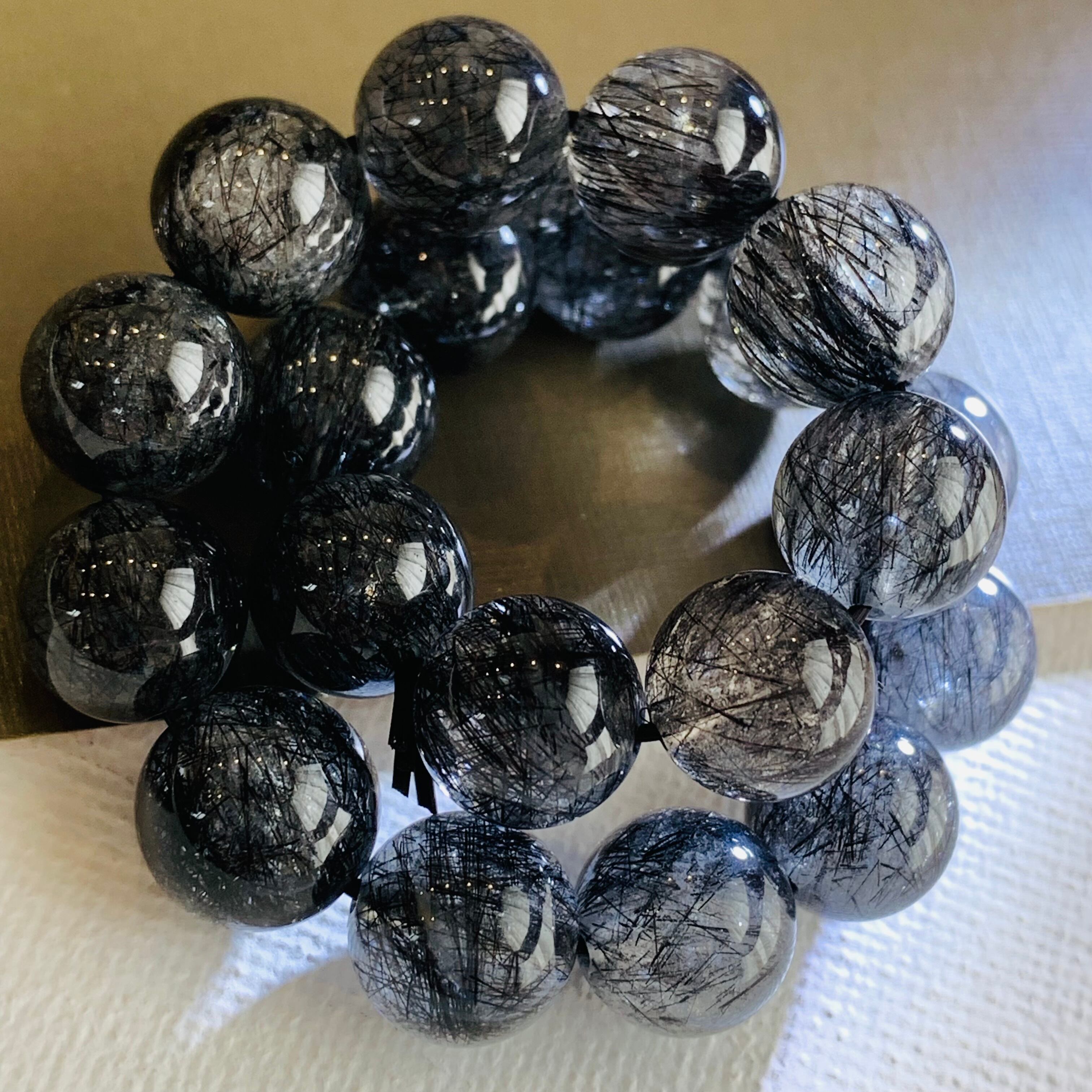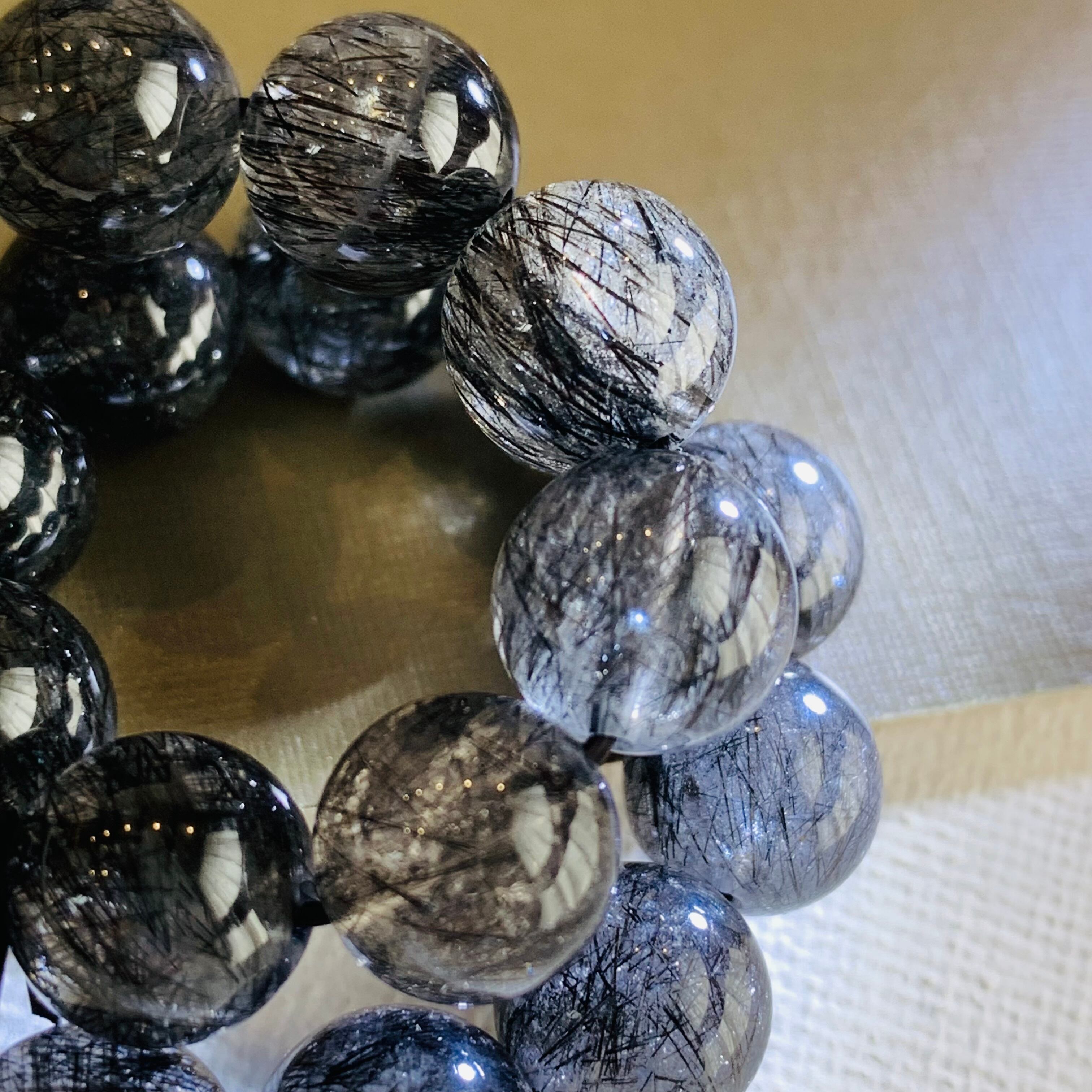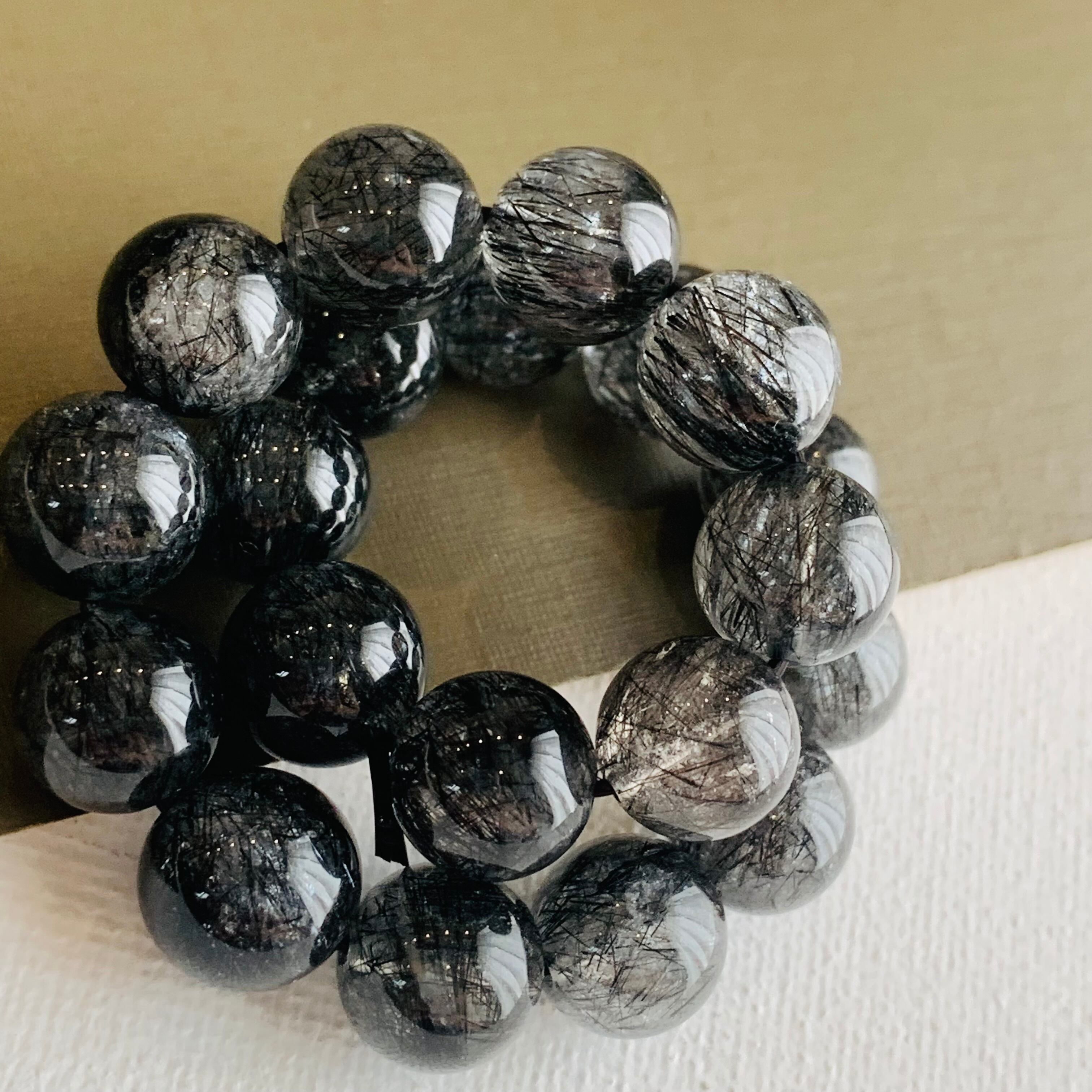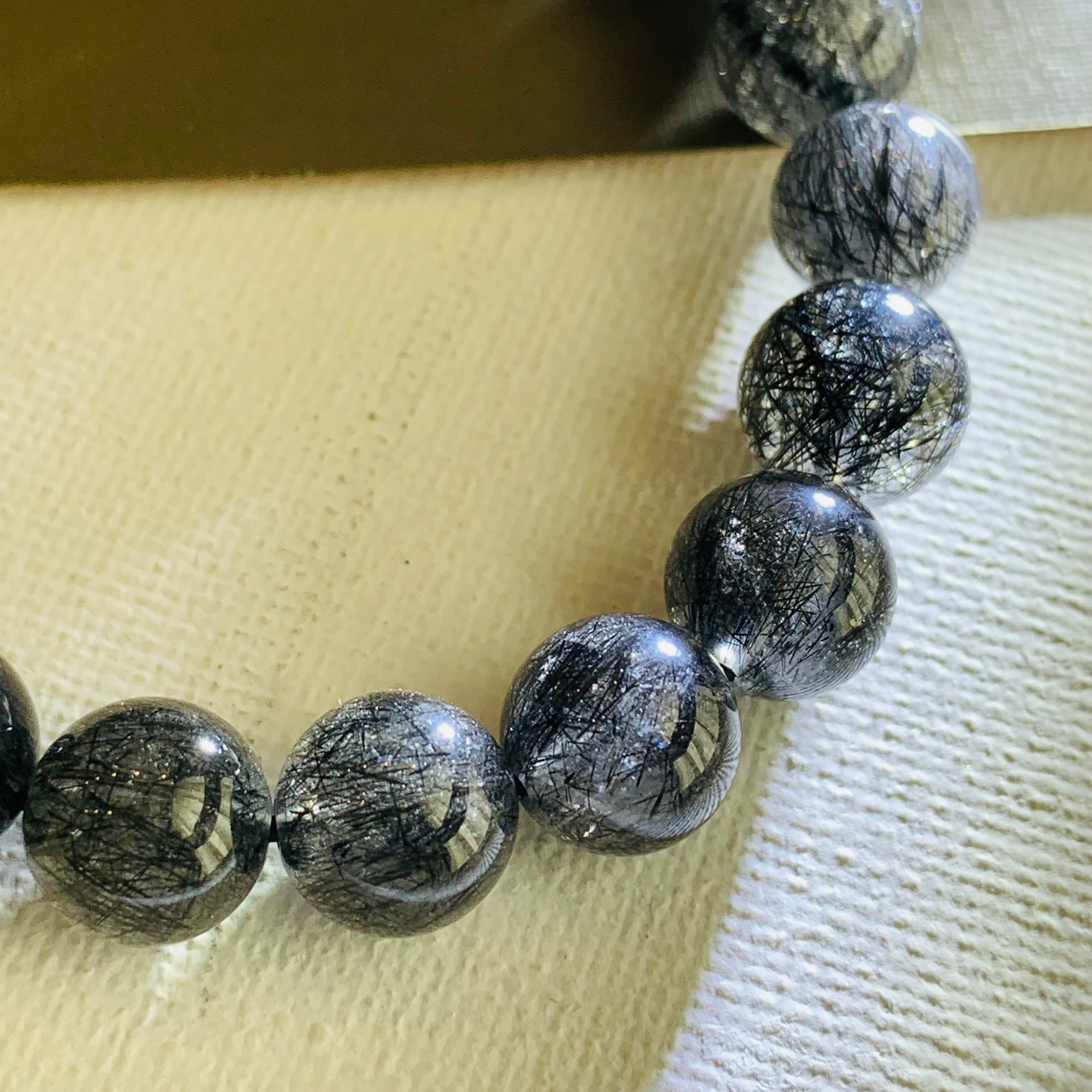 ブラックルチルクォーツ 10㍉黒髪晶 ブレスレット 天然石 K159