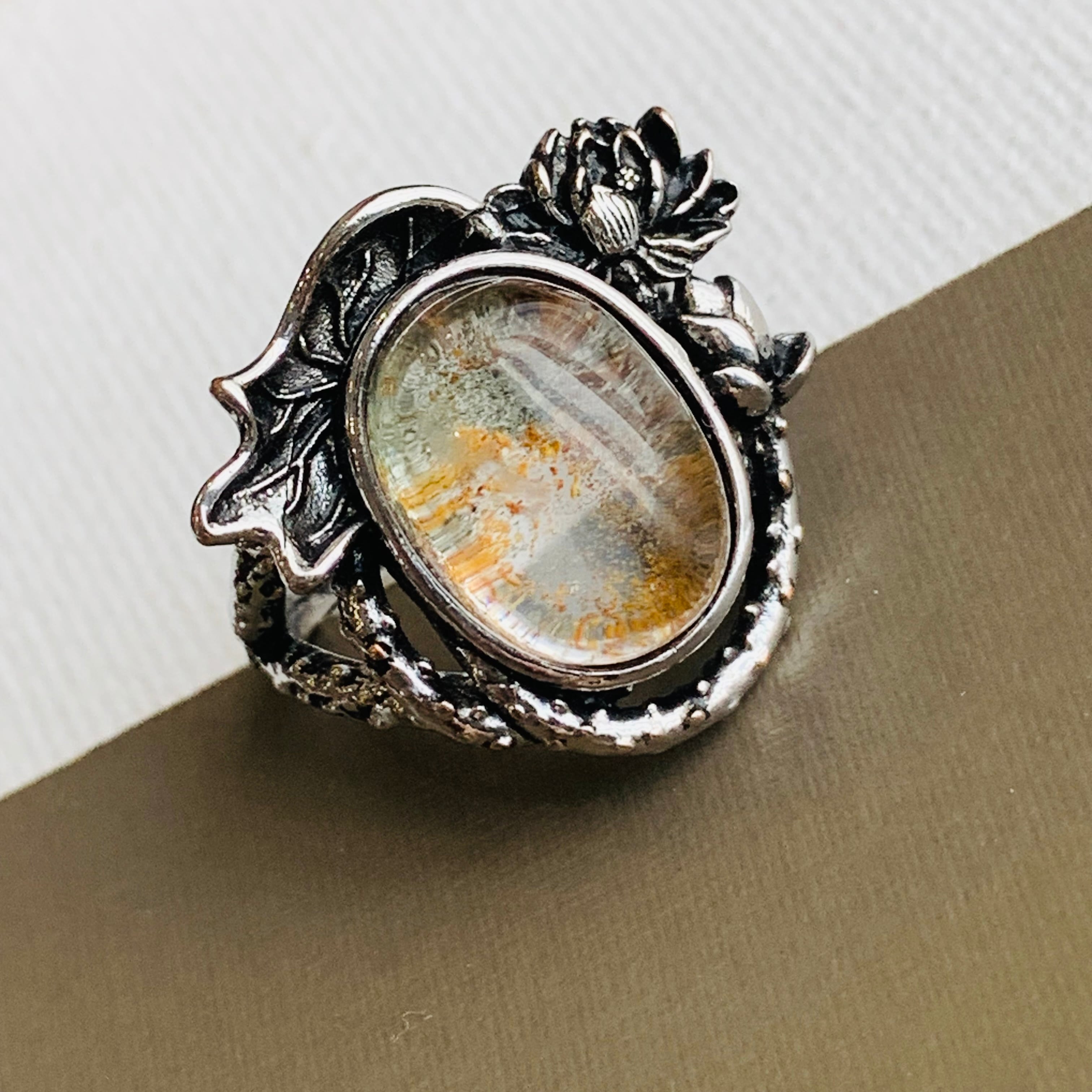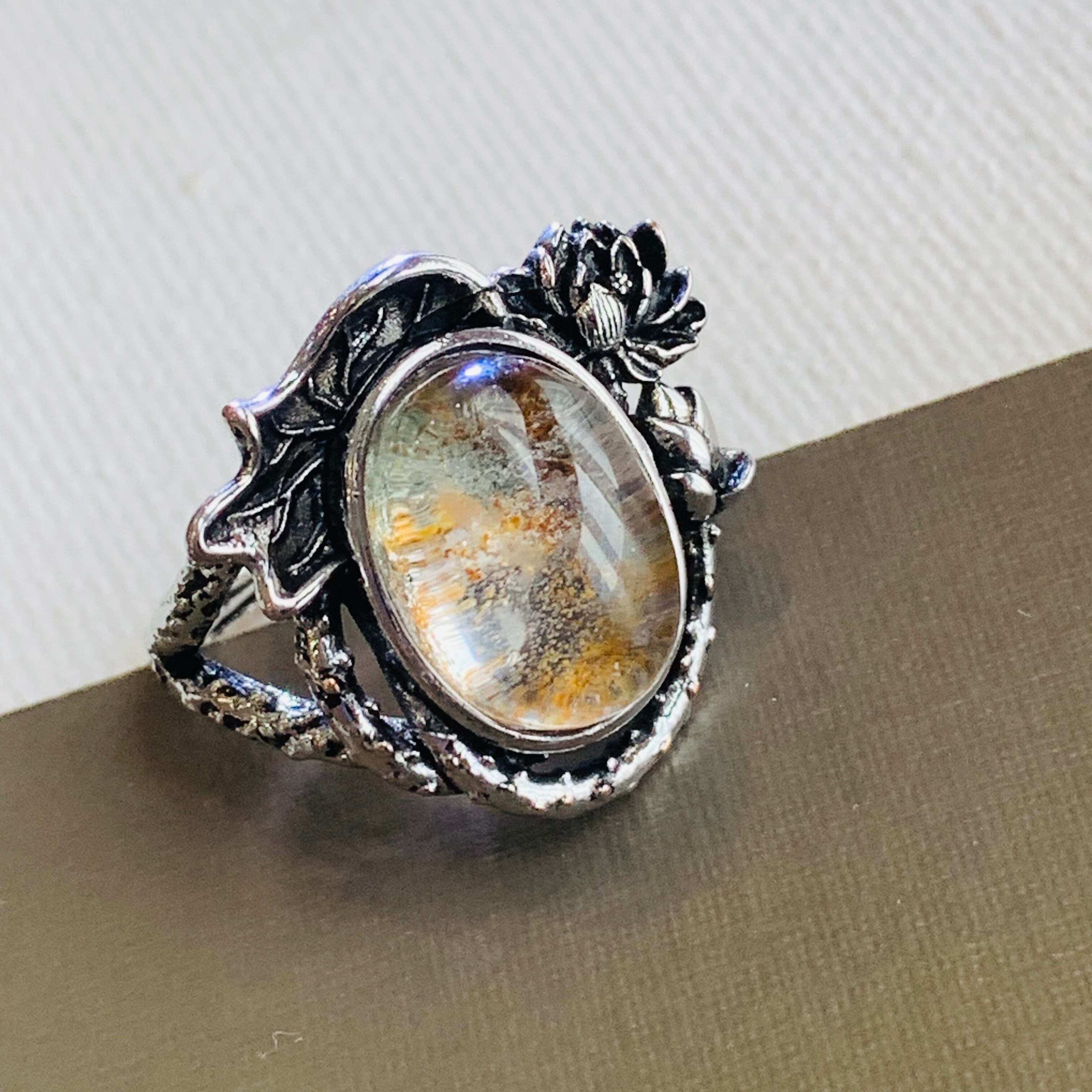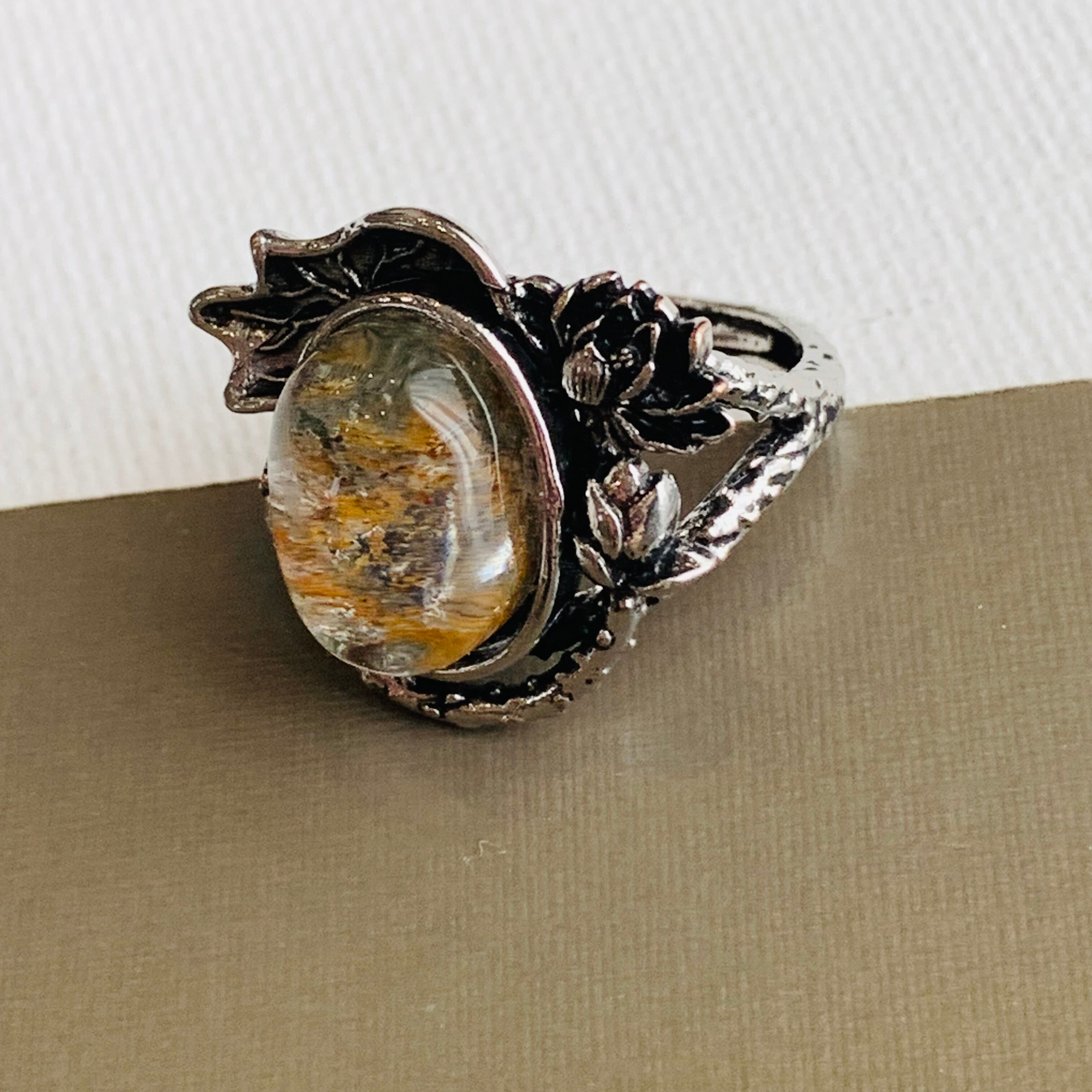 ガーデンクォーツ 天然石リング ビンテージ風指輪 フリーサイズ 合金 E
