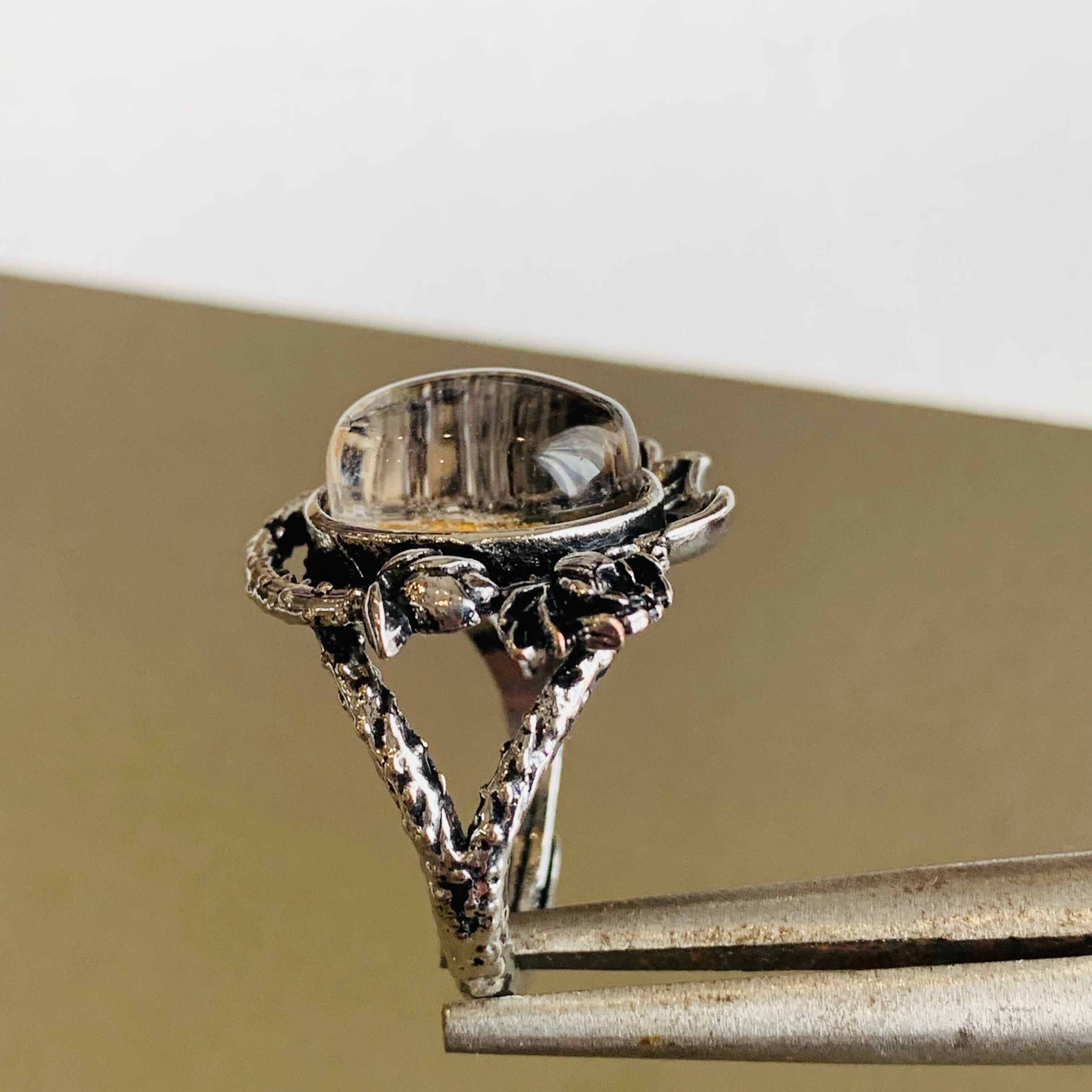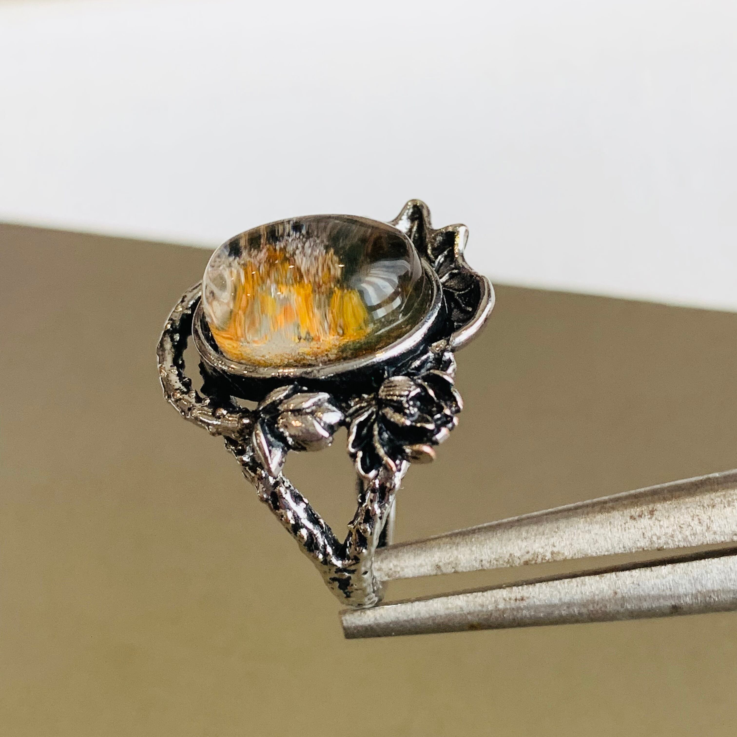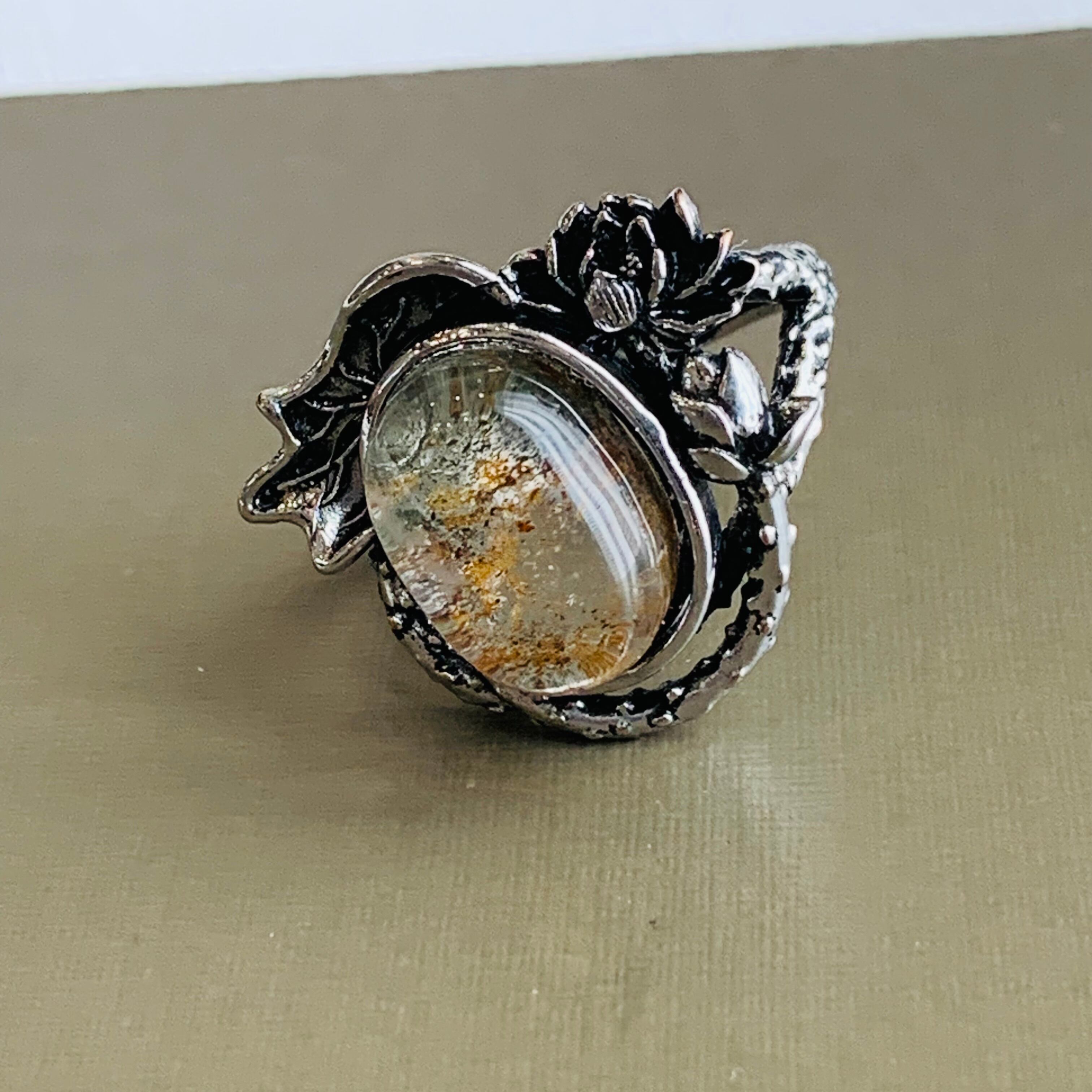 ガーデンクォーツ 天然石リング ビンテージ風指輪 フリーサイズ 合金 E