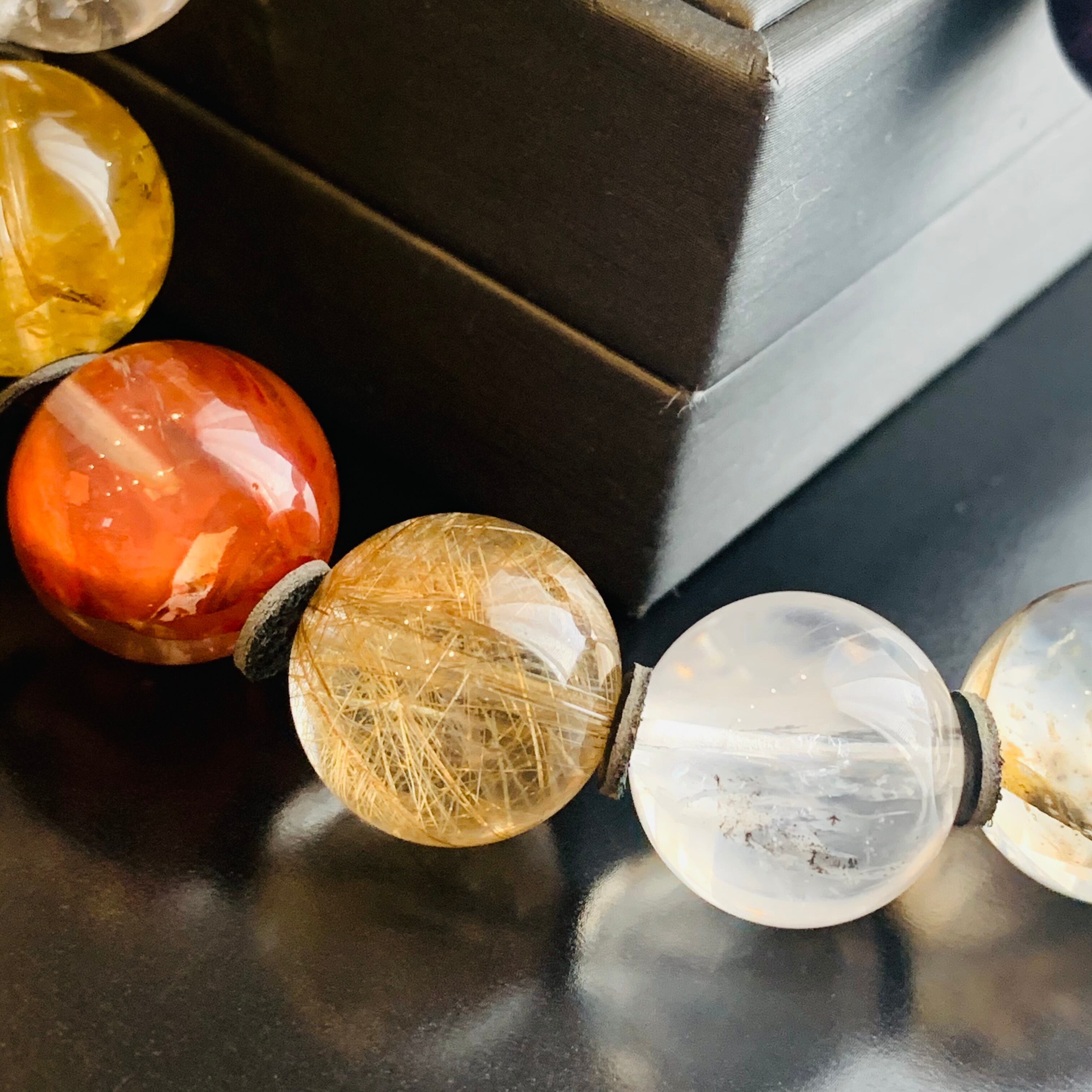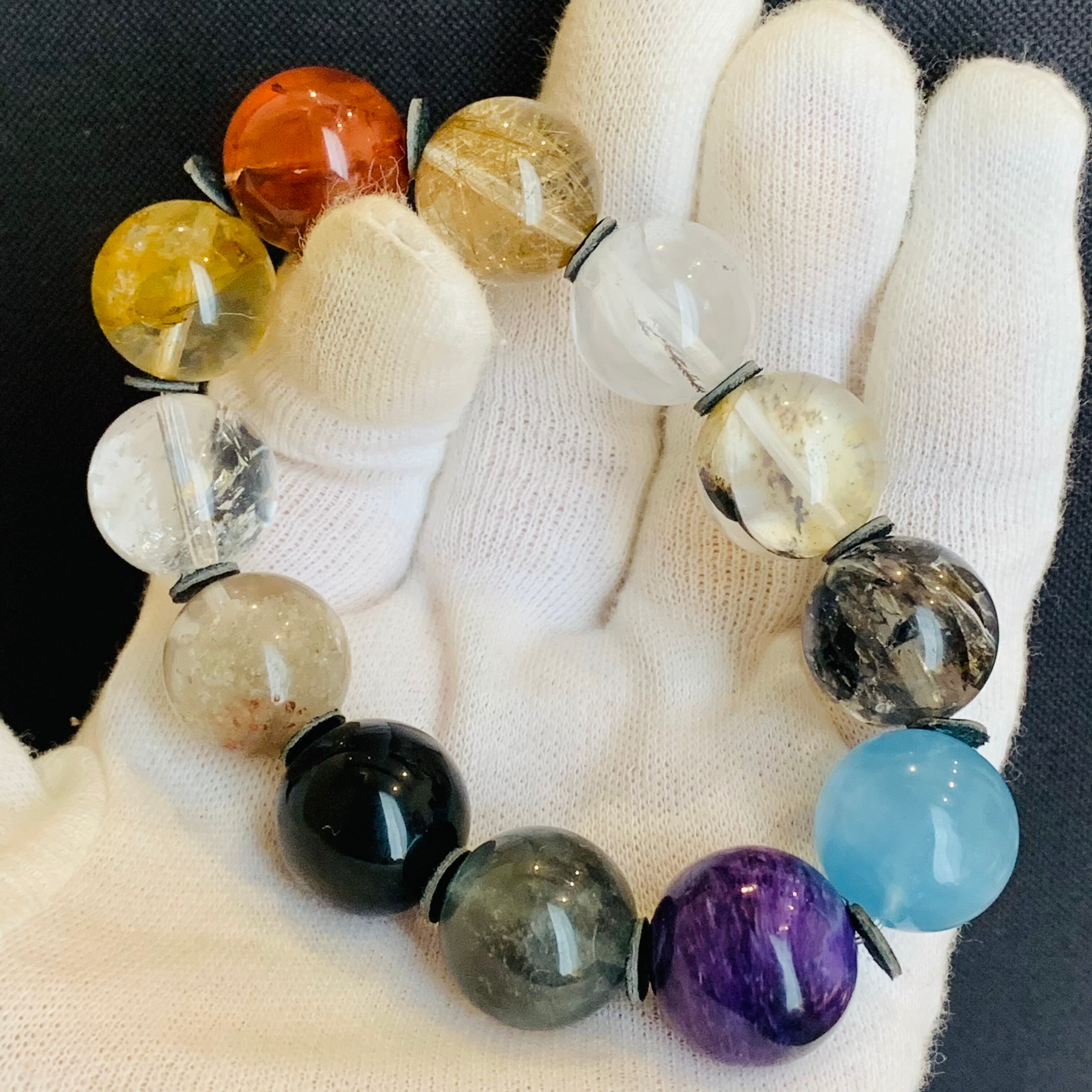 いろんな種類の水晶を同じサイズの珠を集めてやっと1本ができる貴重なブレスレット