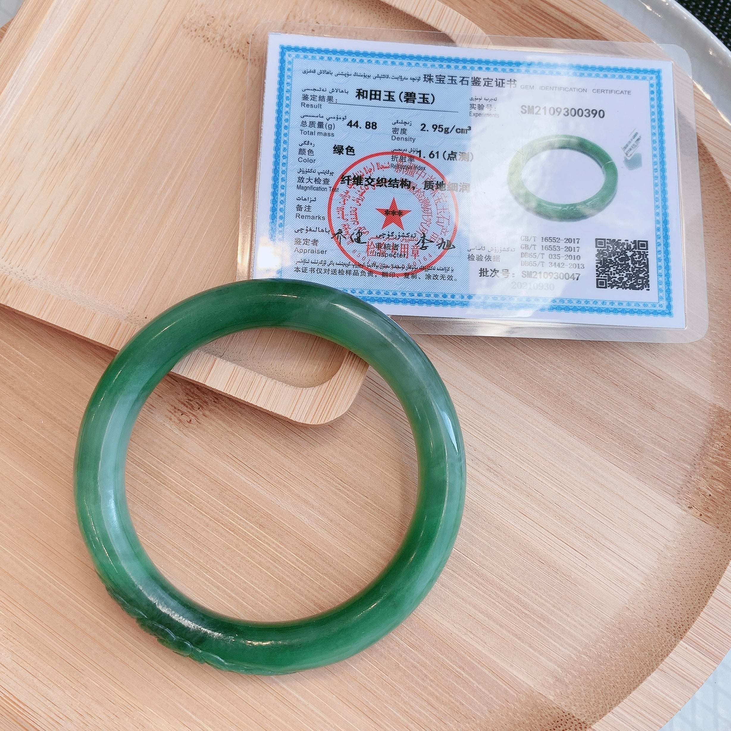 和田玉 バングル 54.4mm 新品 マーブル 彫刻 腕輪