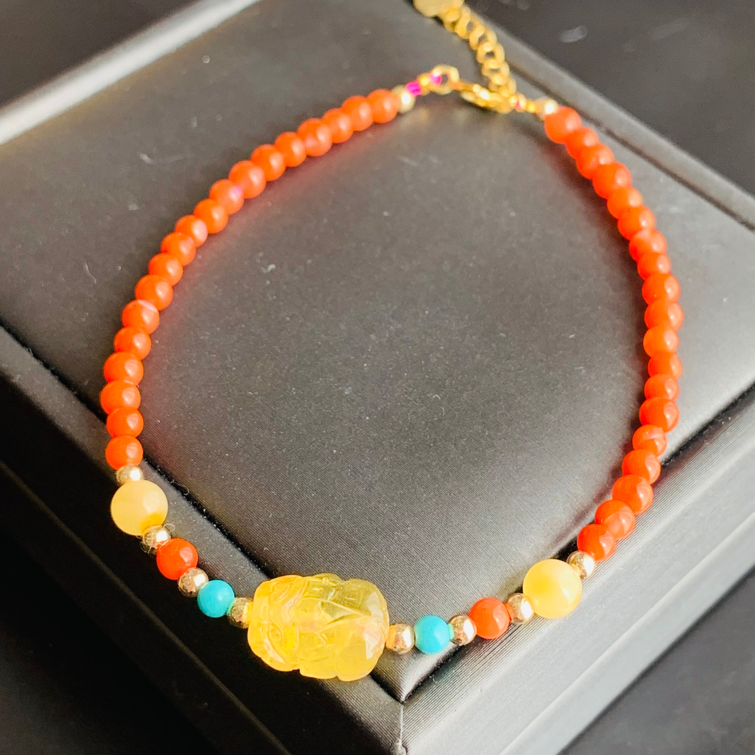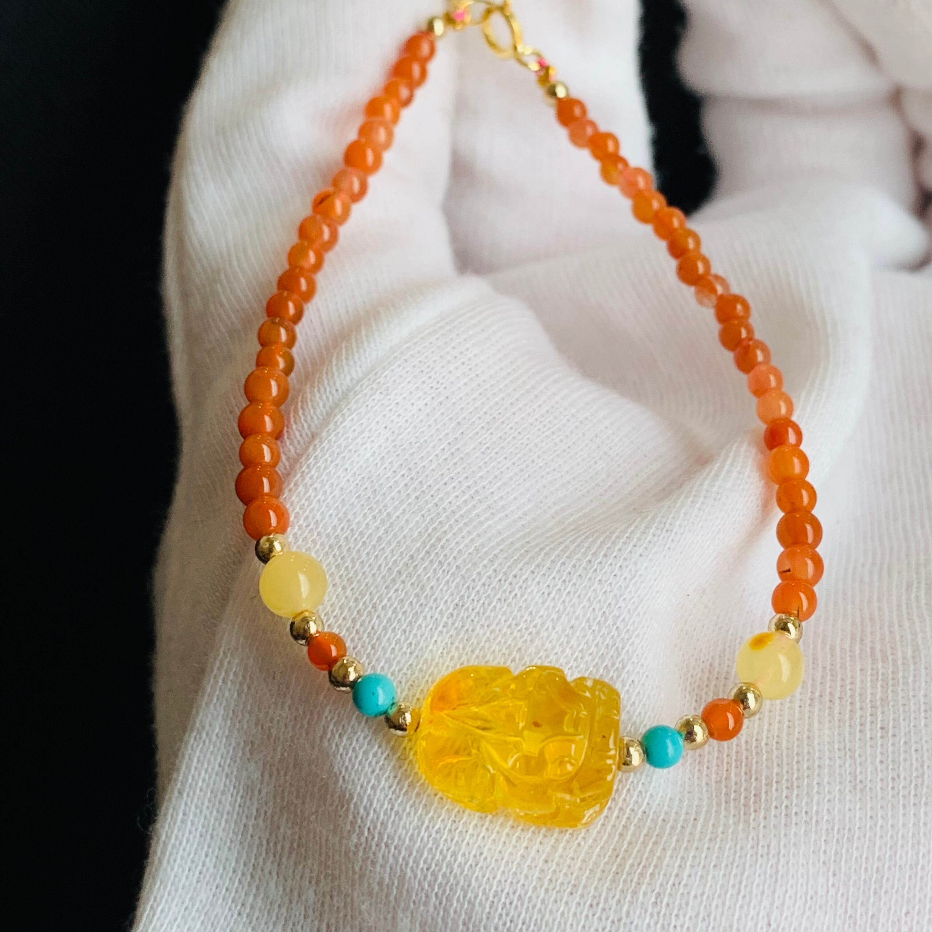 ブレスレット アンバー貔貅 南紅瑪瑙 天然石 デザインブレス