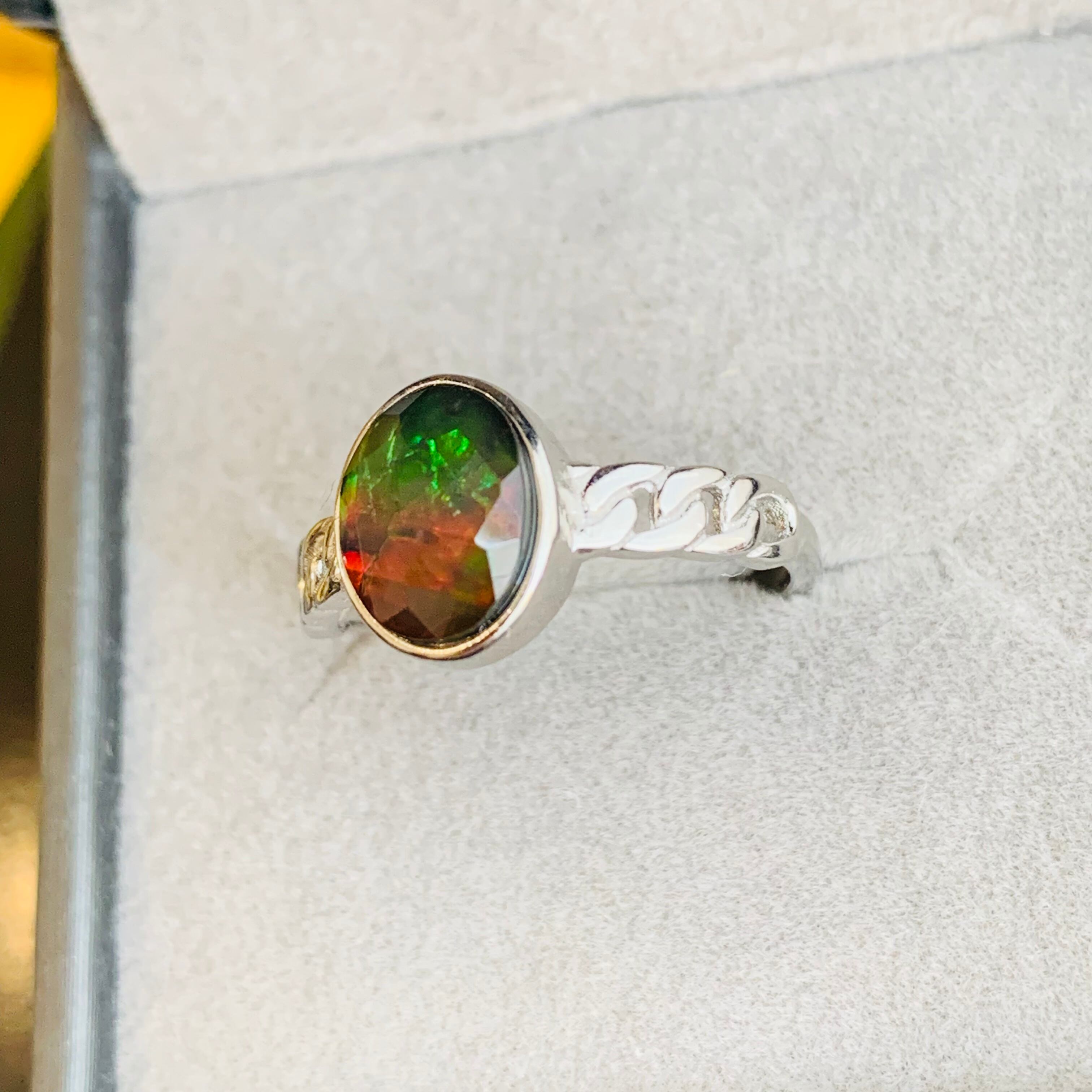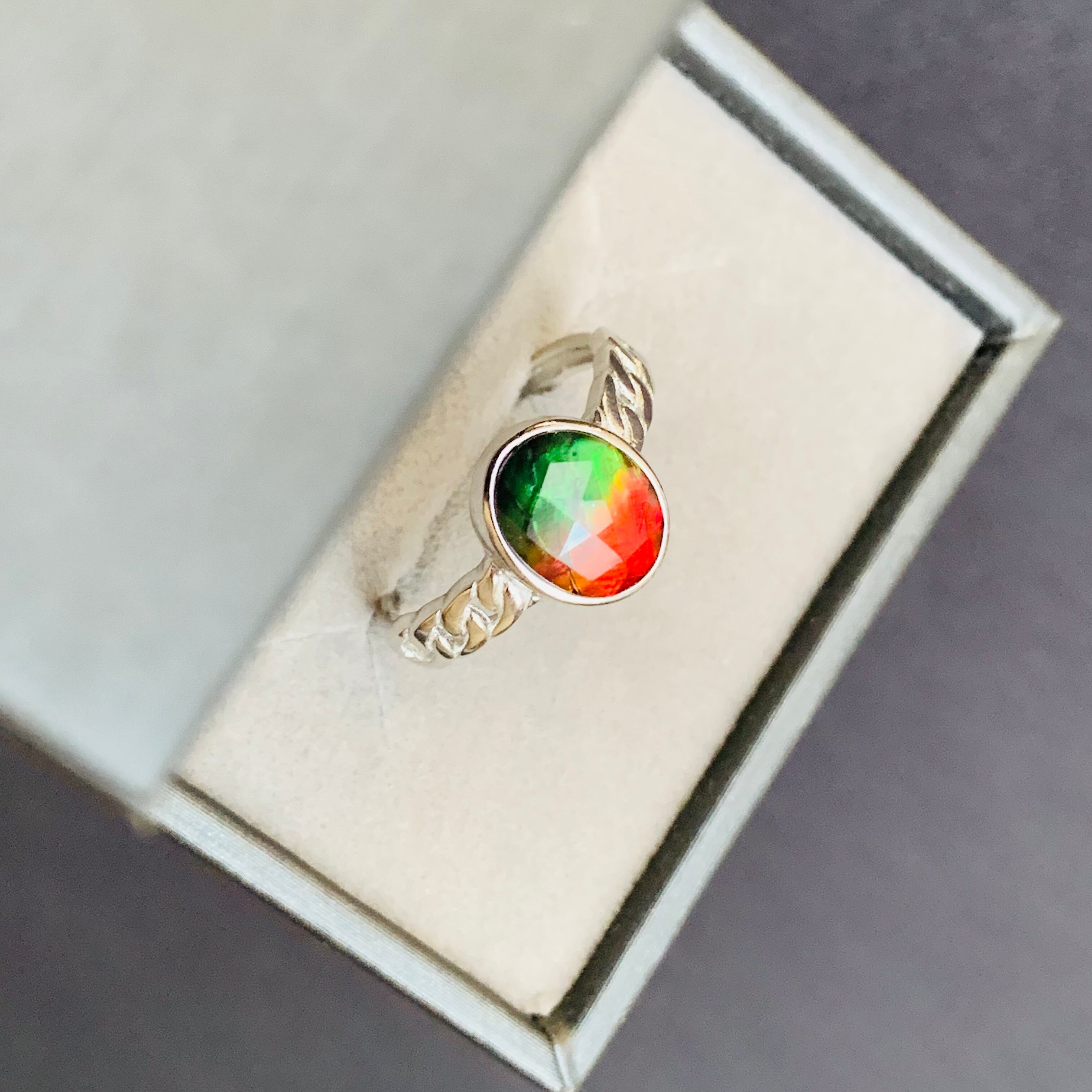 アンモナイトの化石は世界各地で発見されていますが、宝石としての価値が認められる虹色に輝く良質のものは、地殻の成分や地圧など特殊な条件が揃ったカナダアルバータ州の7000万年の地層からのみ採掘されます。