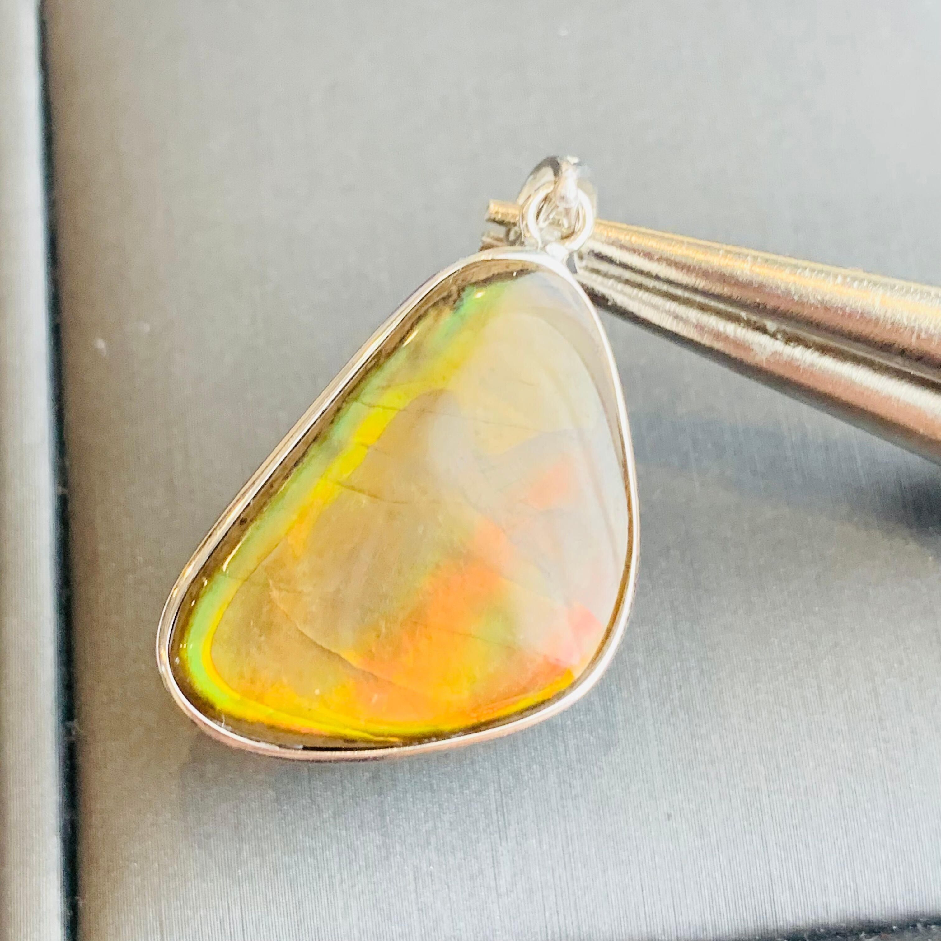 当方から出品しているアンモライトは全て一枚物の母岩付アンモライトで、アラゴナイト層の欠片を寄せ集めた加工品ではありません。