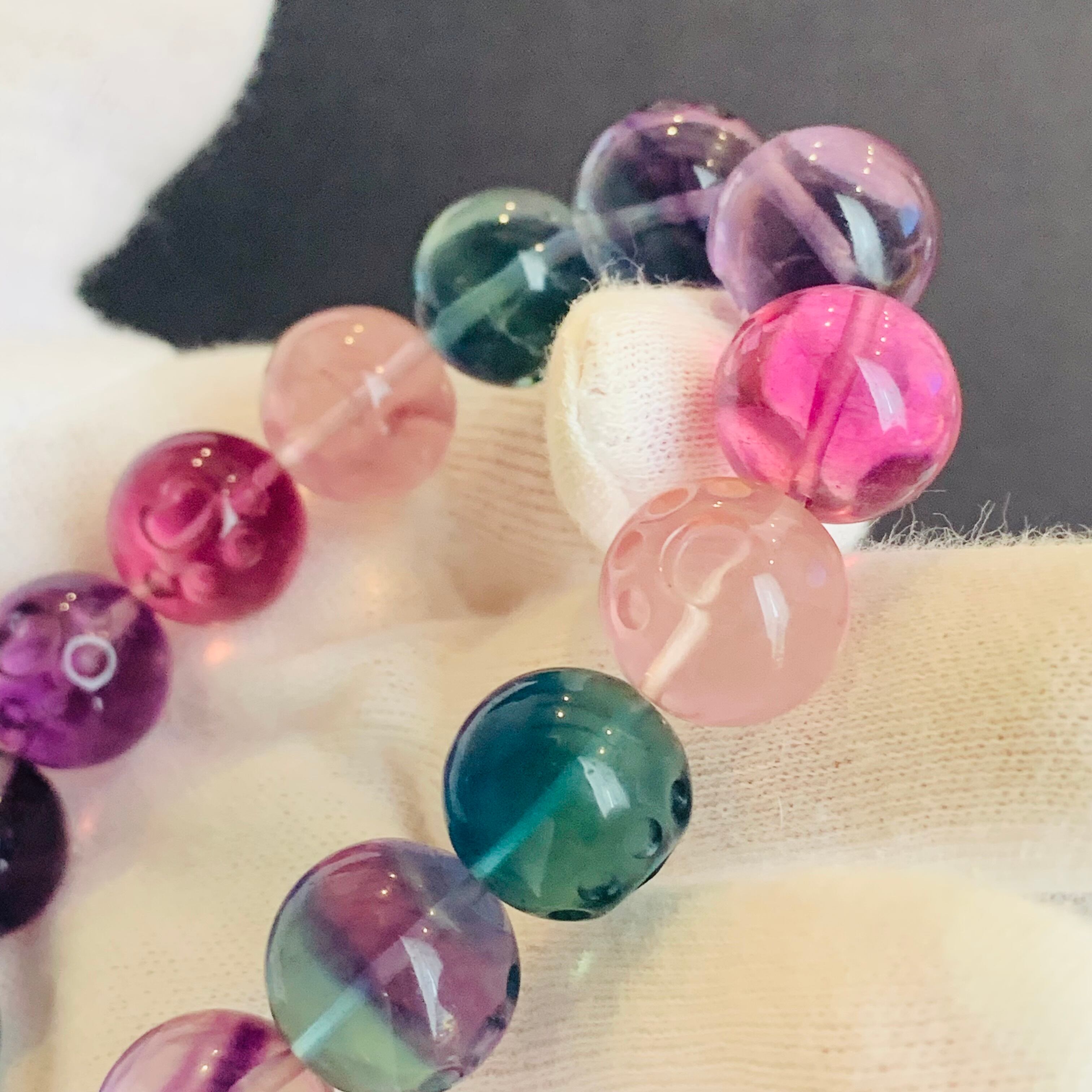 フローライト ブレスレット 天然石 パワーストーン 肉球彫刻 No.370