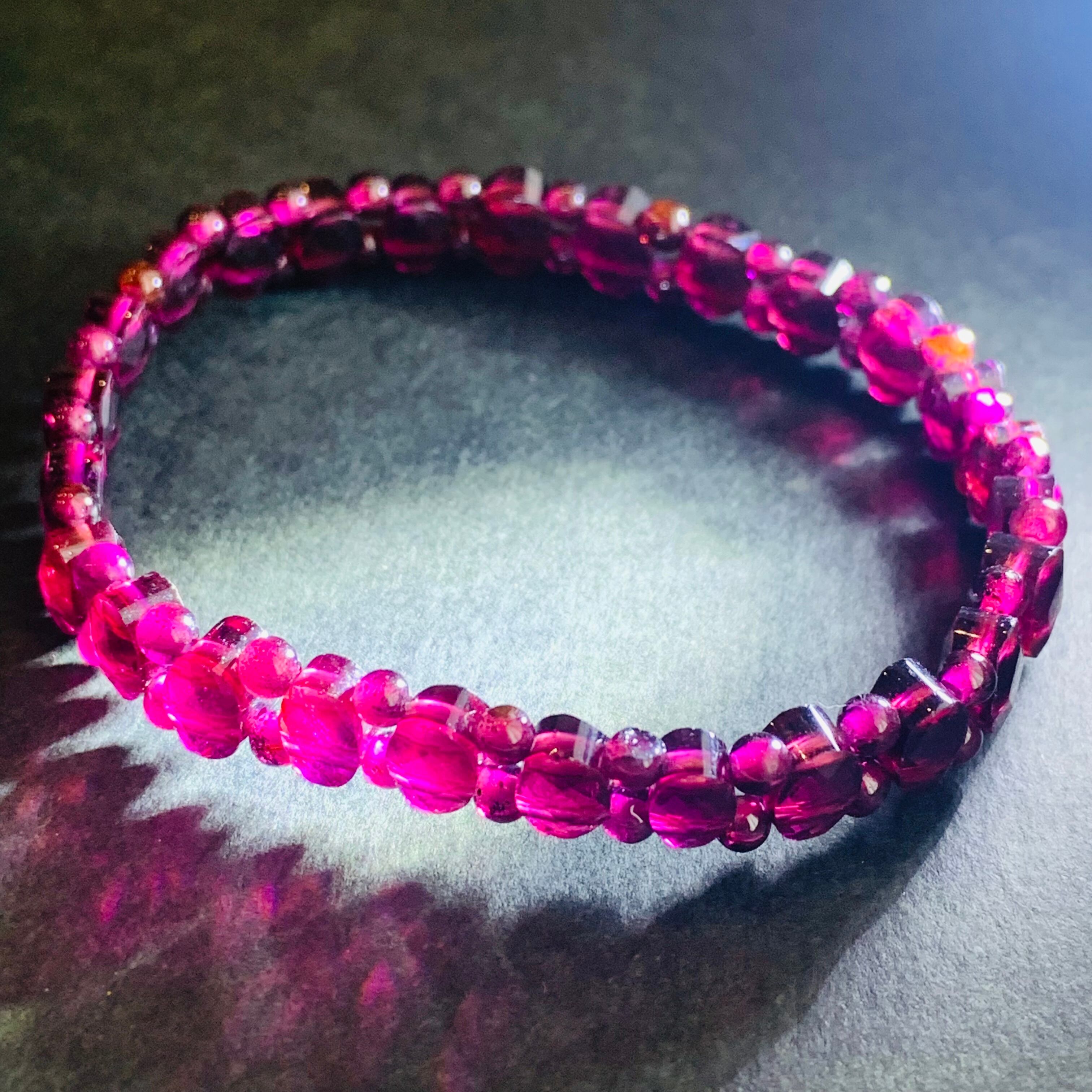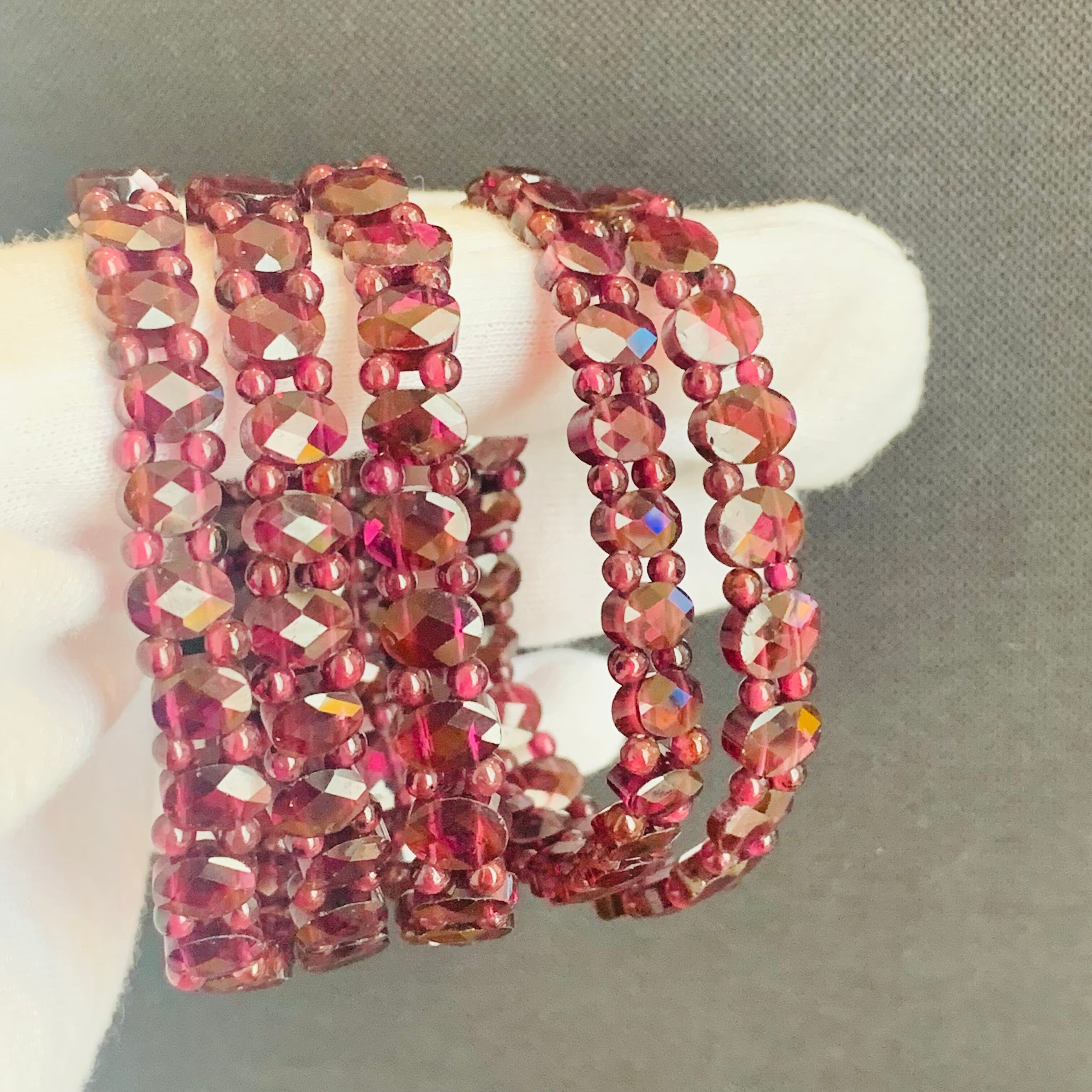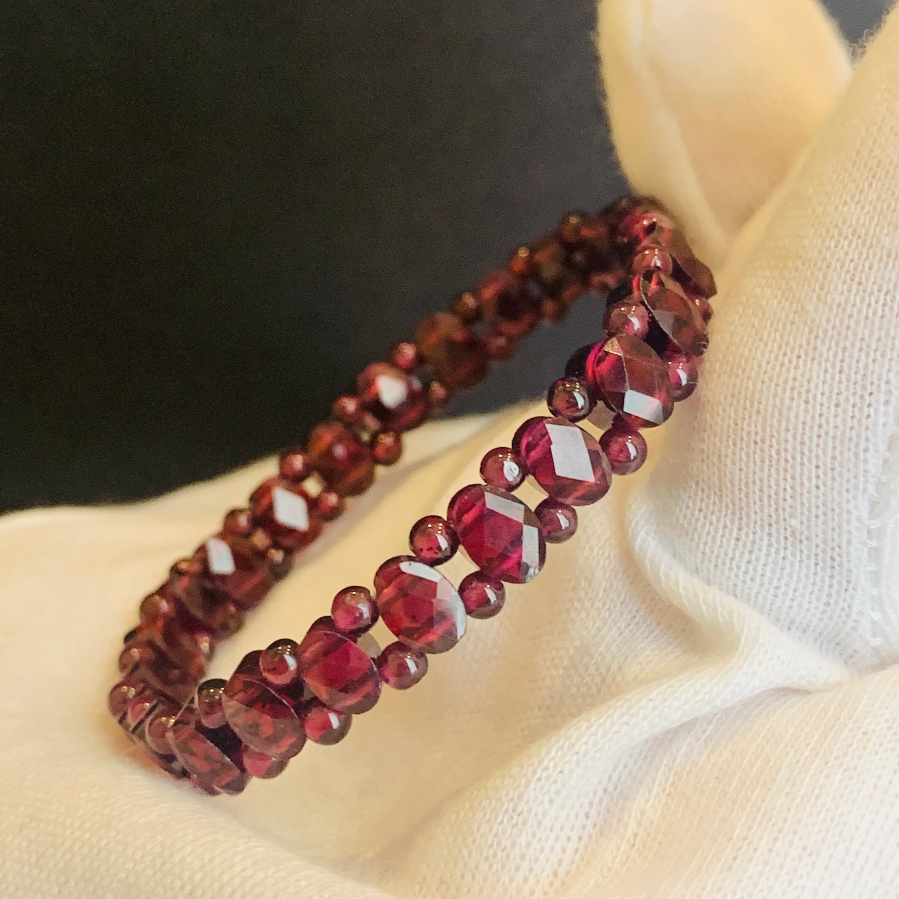 高品質ガーネットをダイヤカットにして編みブレスレットにしました