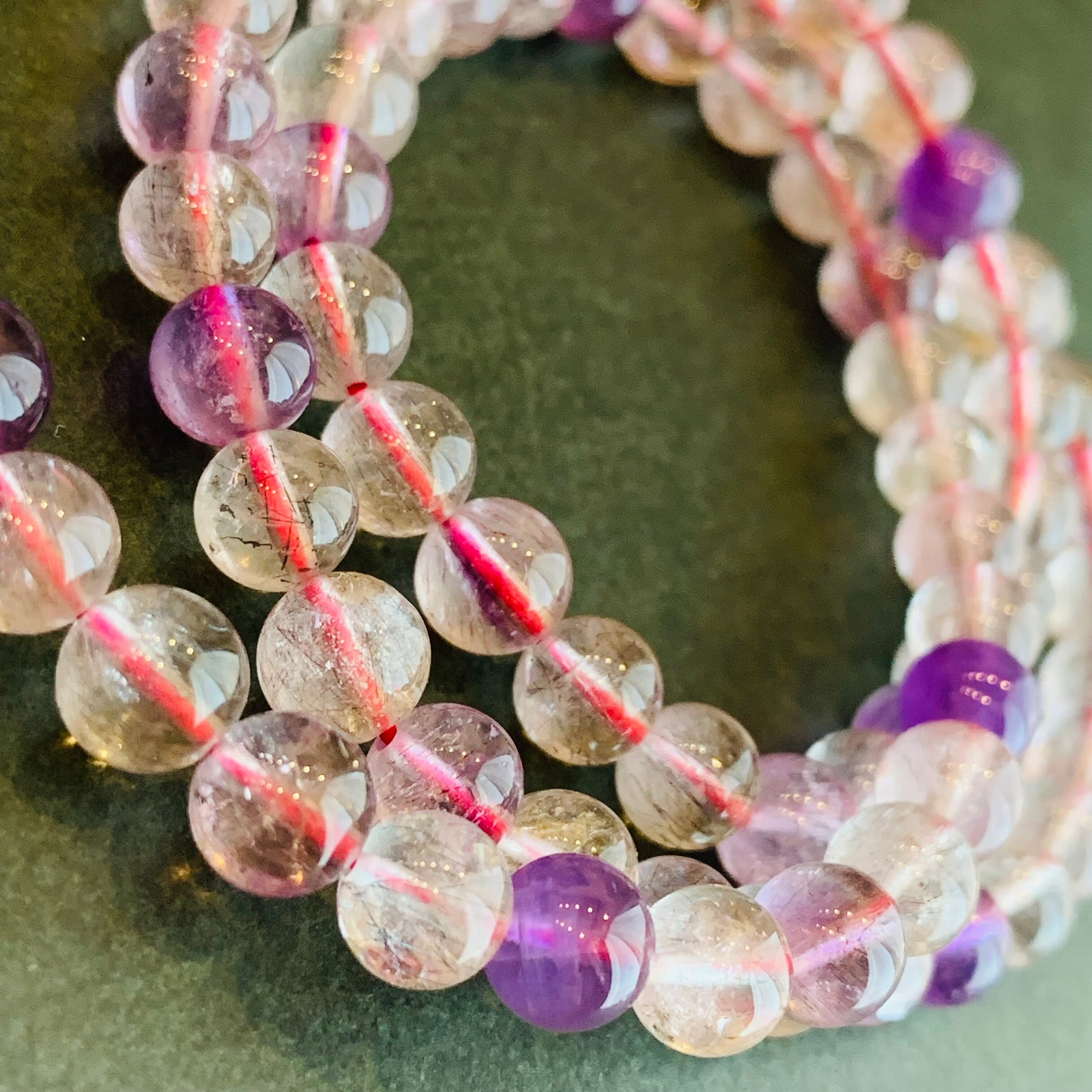 スーパーセブン 3連水晶ブレスレット 6.7mm 天然石 パワーストーン ①
