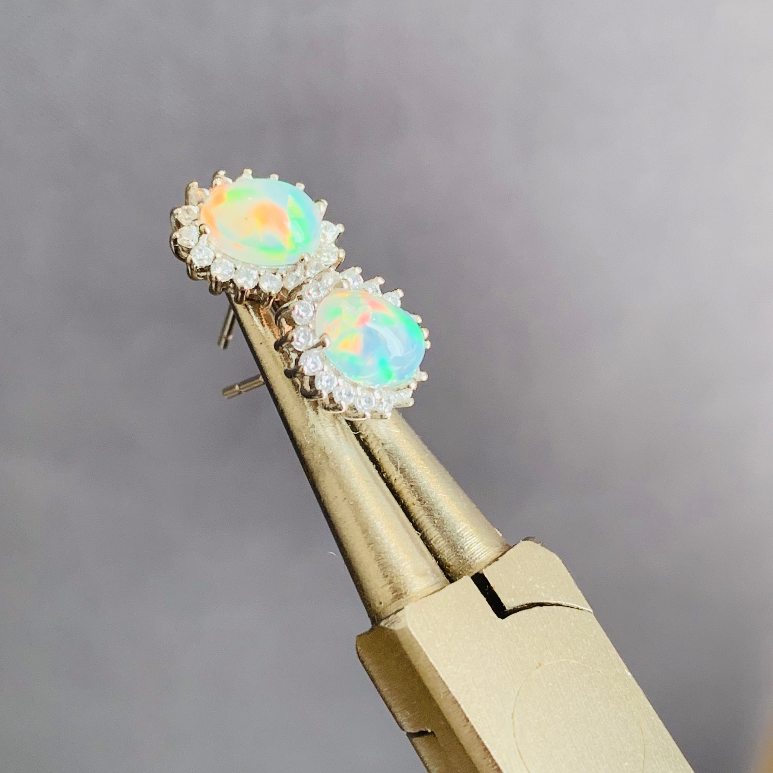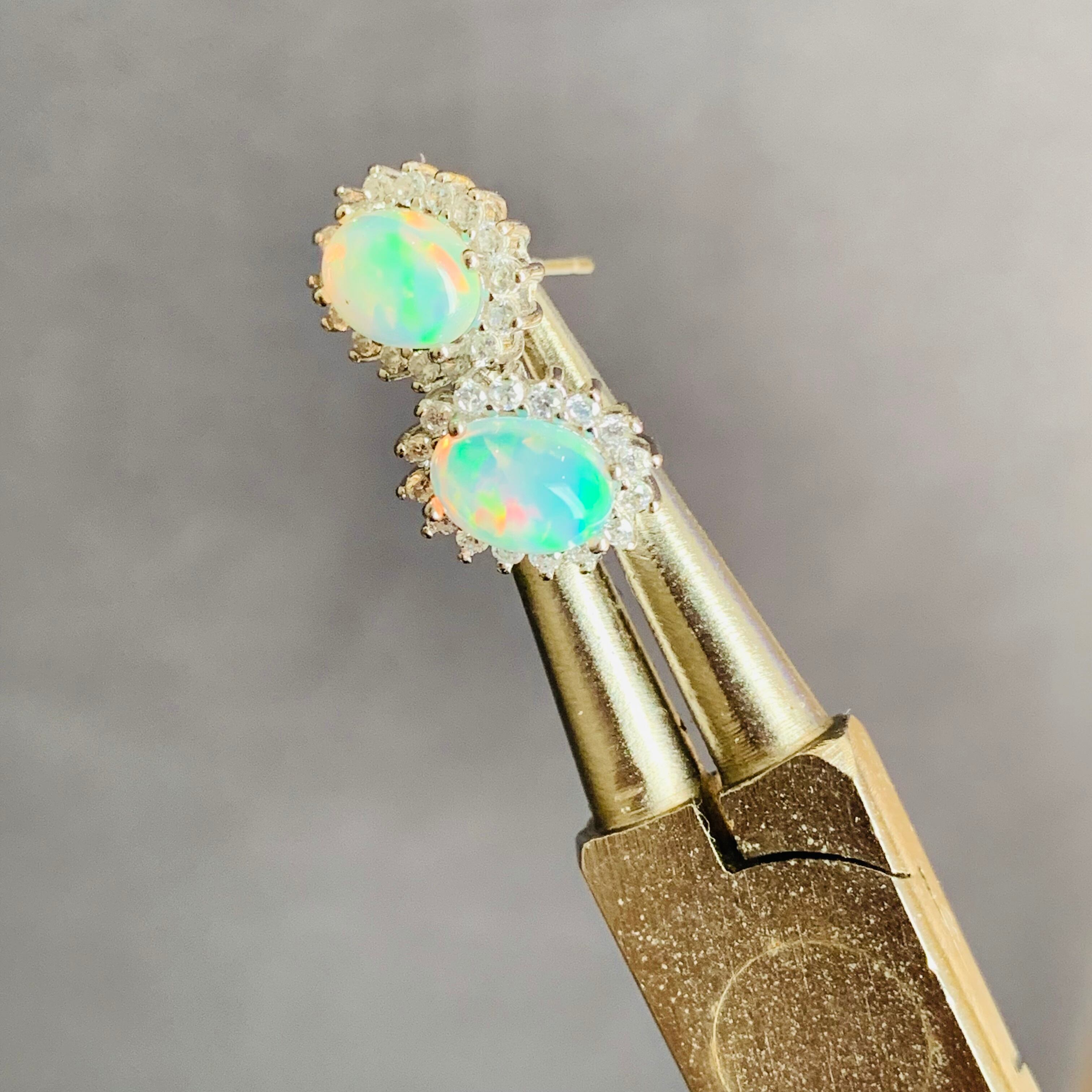 天然オパールのピアス、実物もっと七色に輝く