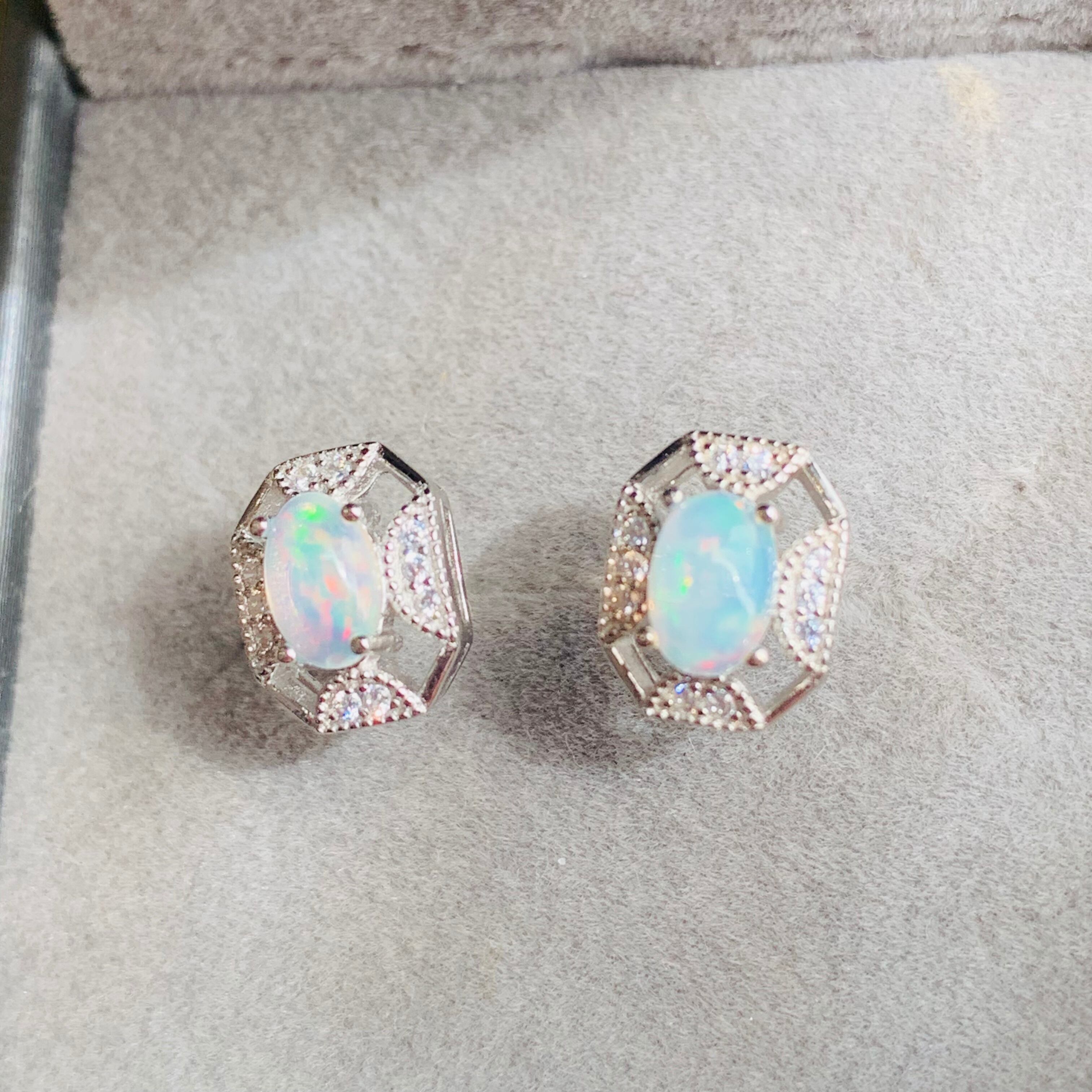 天然オパールのピアス、実物もっと七色に輝く