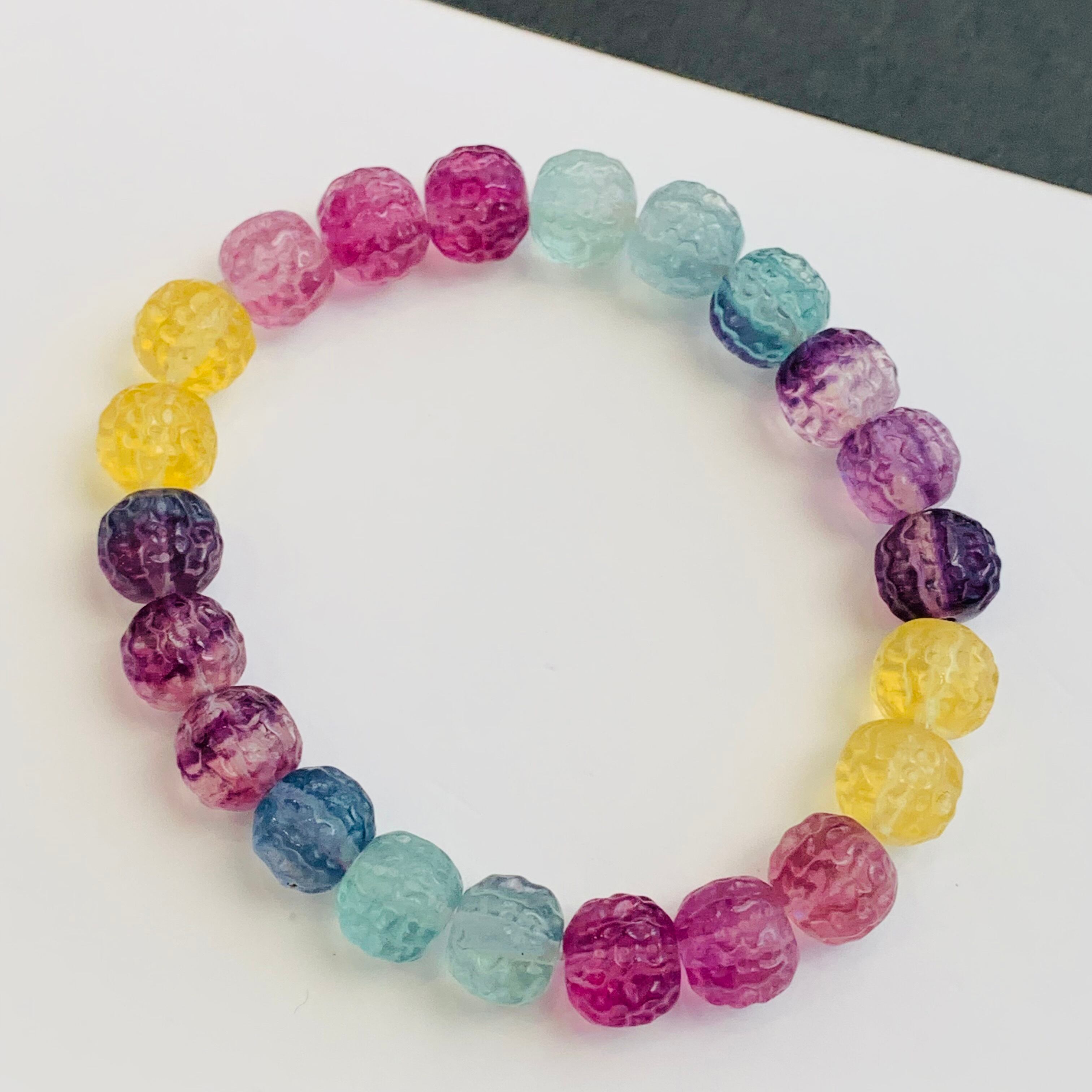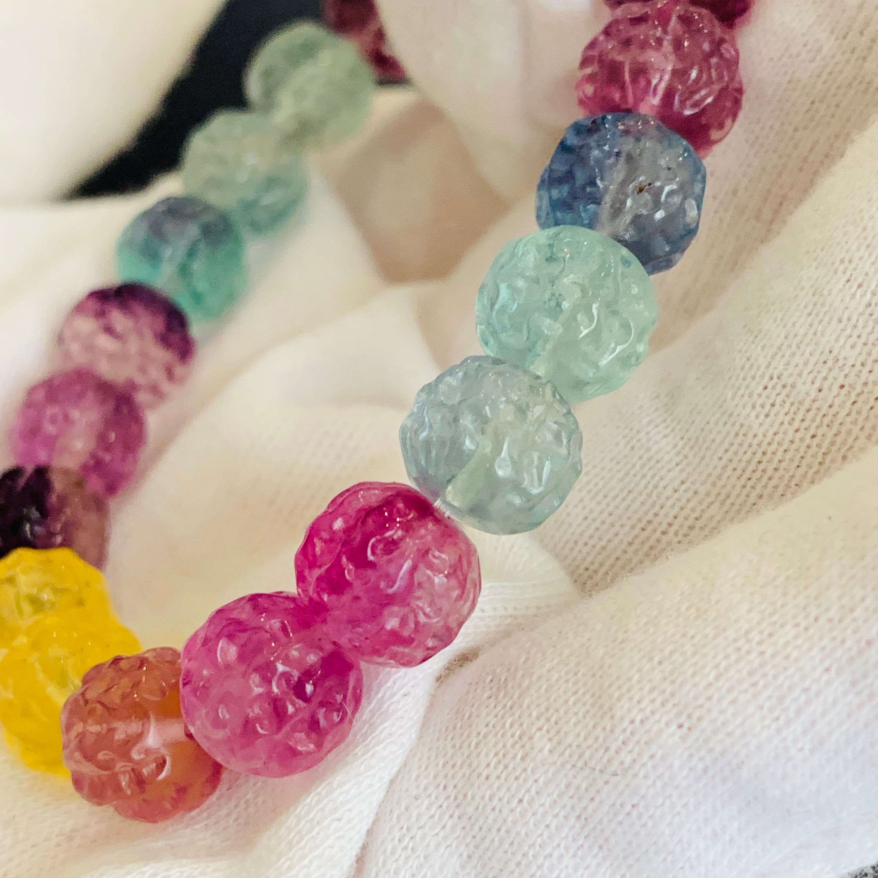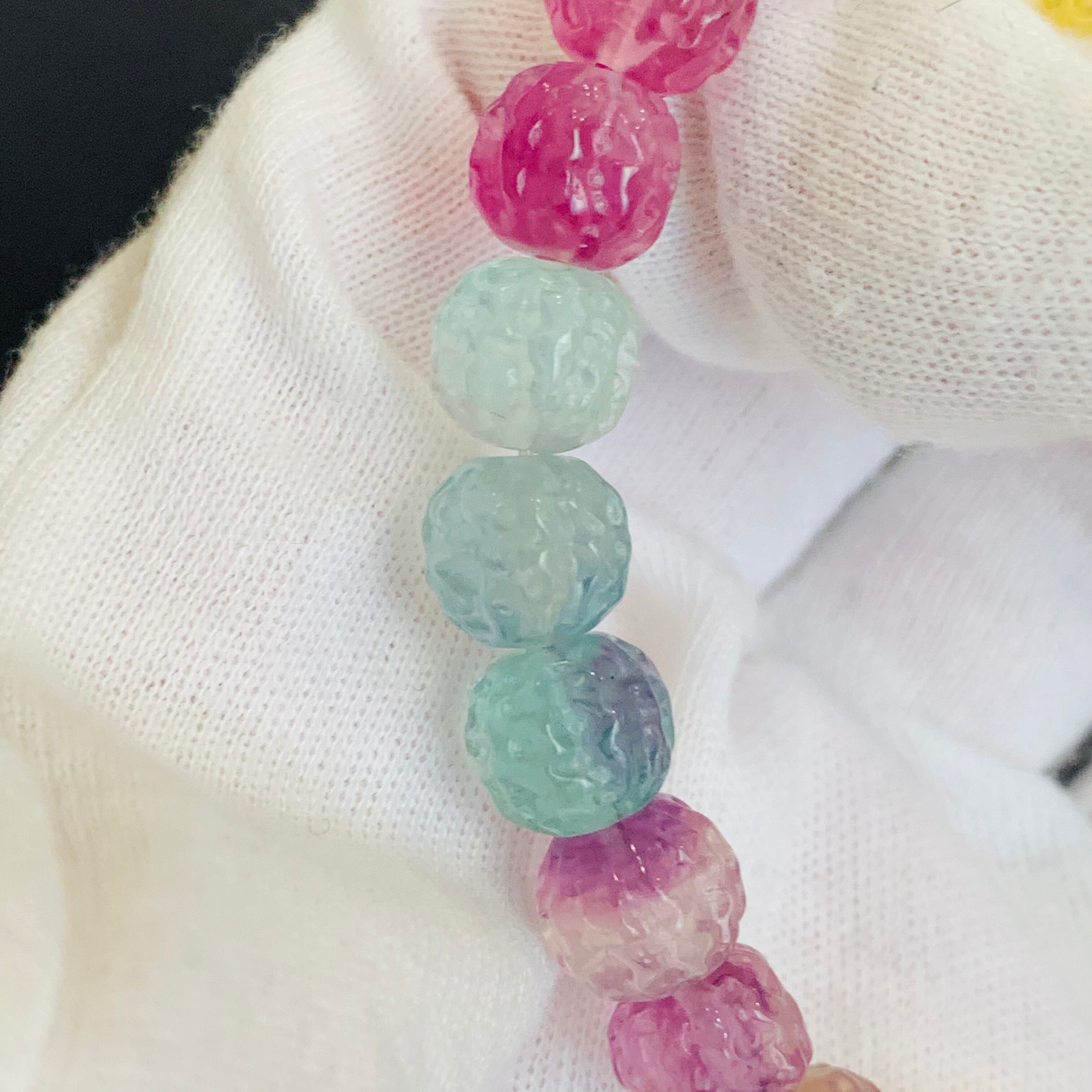 フローライト ブレスレット 天然石 最高品質 くるみ彫刻 バイカラー R①