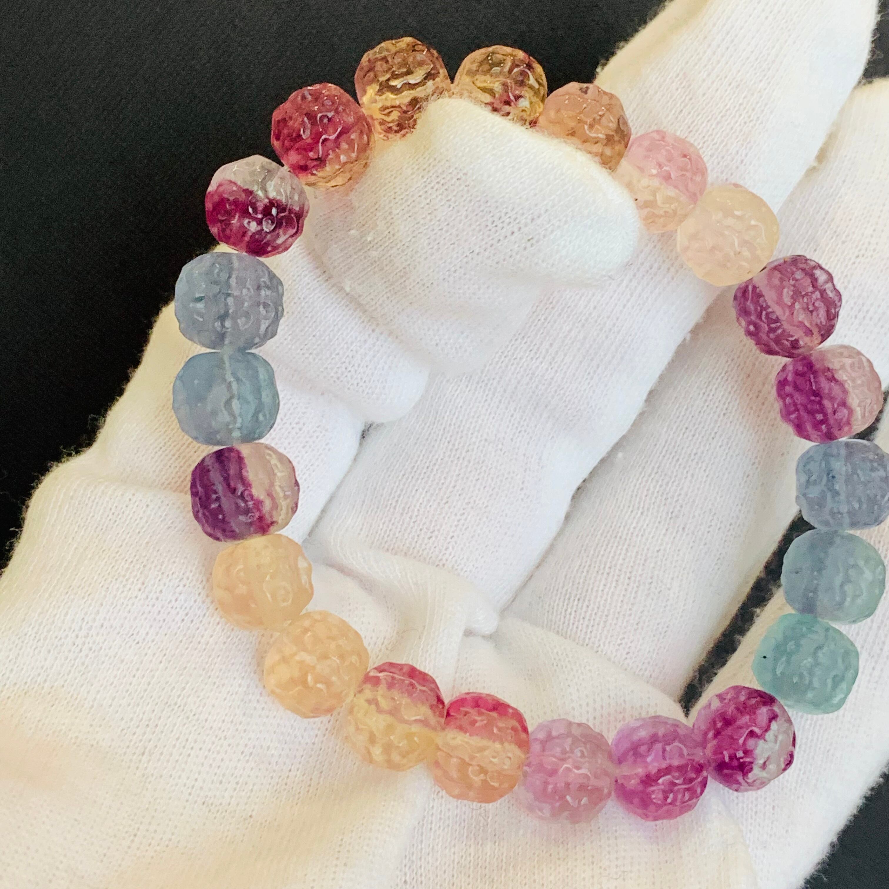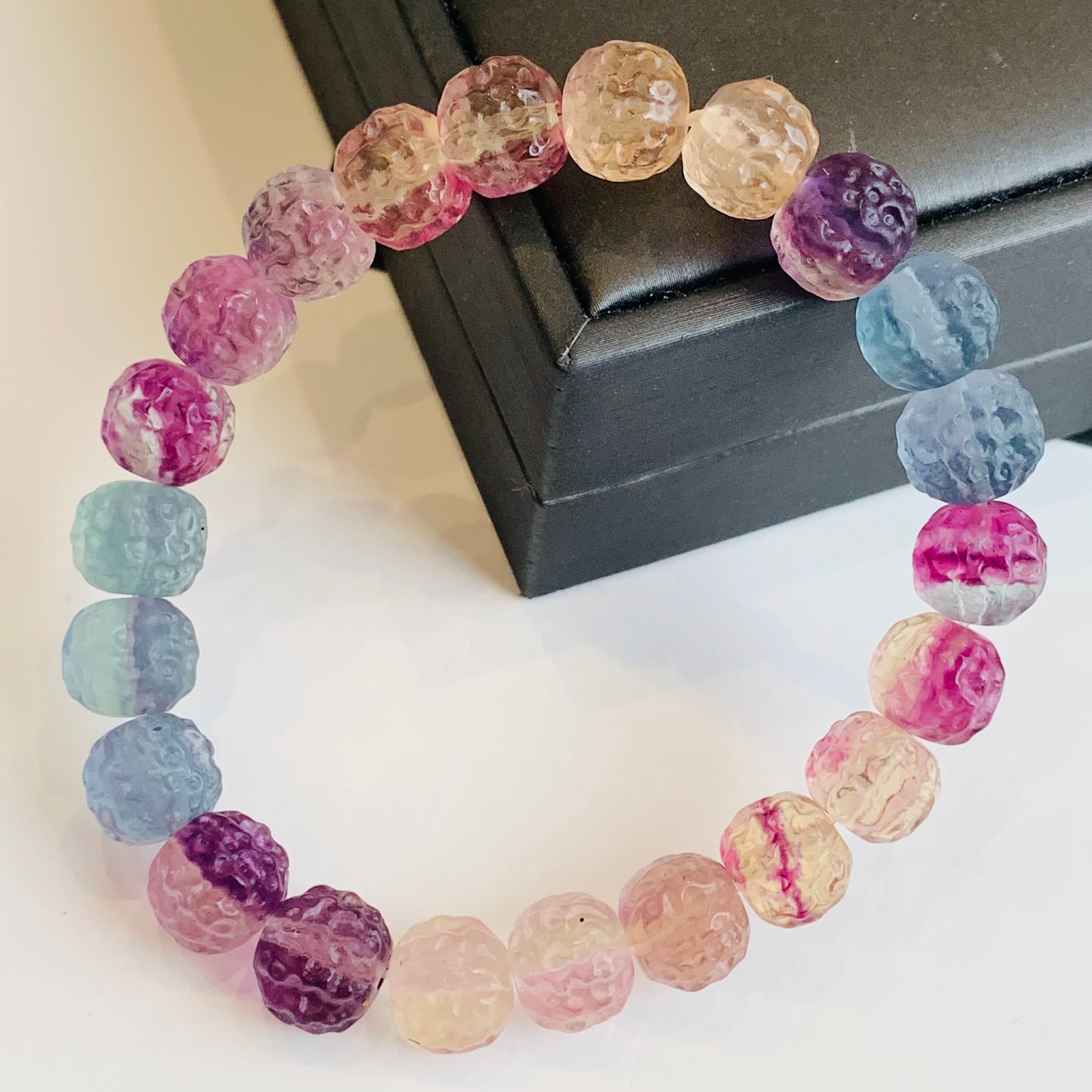 フローライト ブレスレット 天然石 最高品質 くるみ彫刻 バイカラー R②