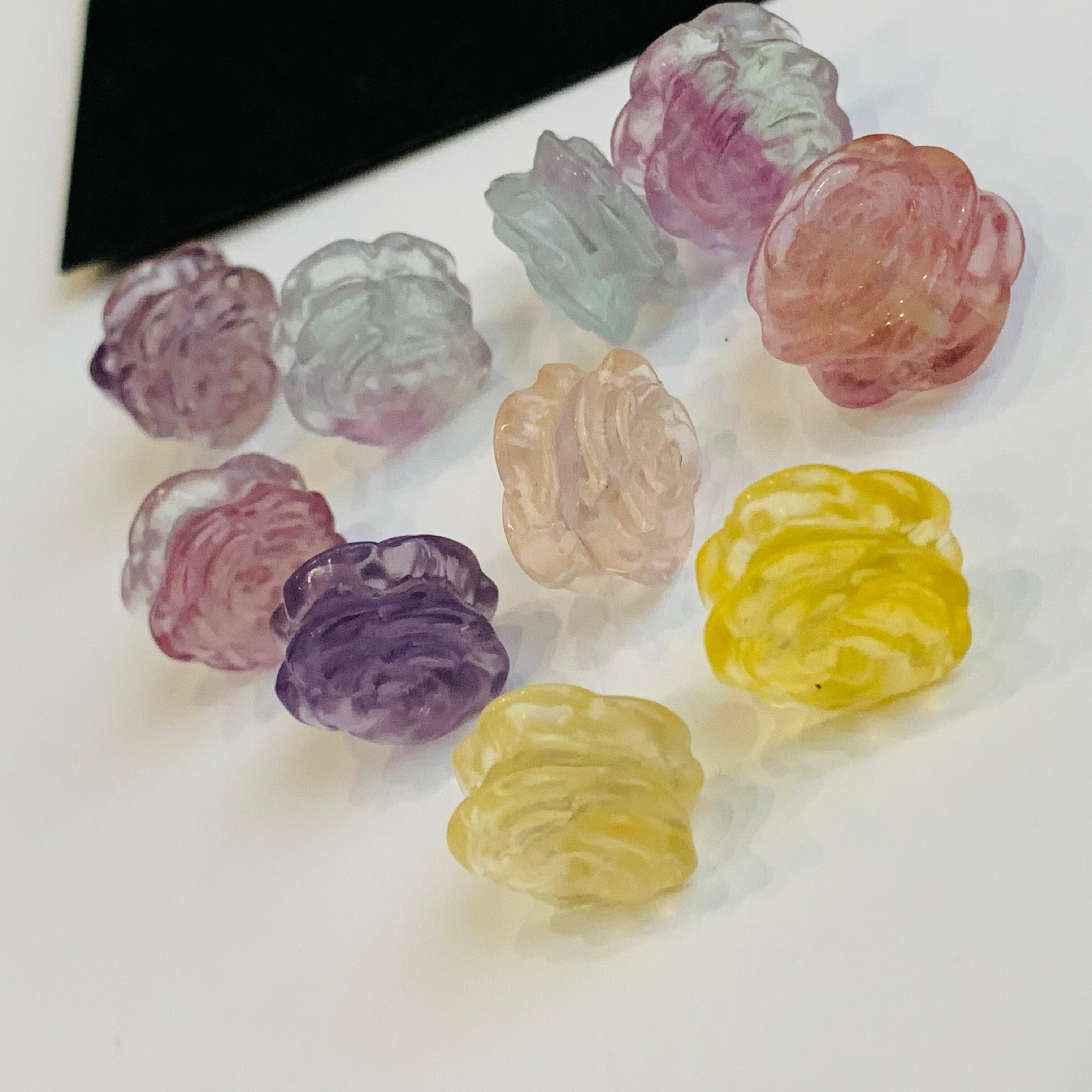 フローライト パステルカラー パワーストーン バラ彫刻ビーズ10個セット A