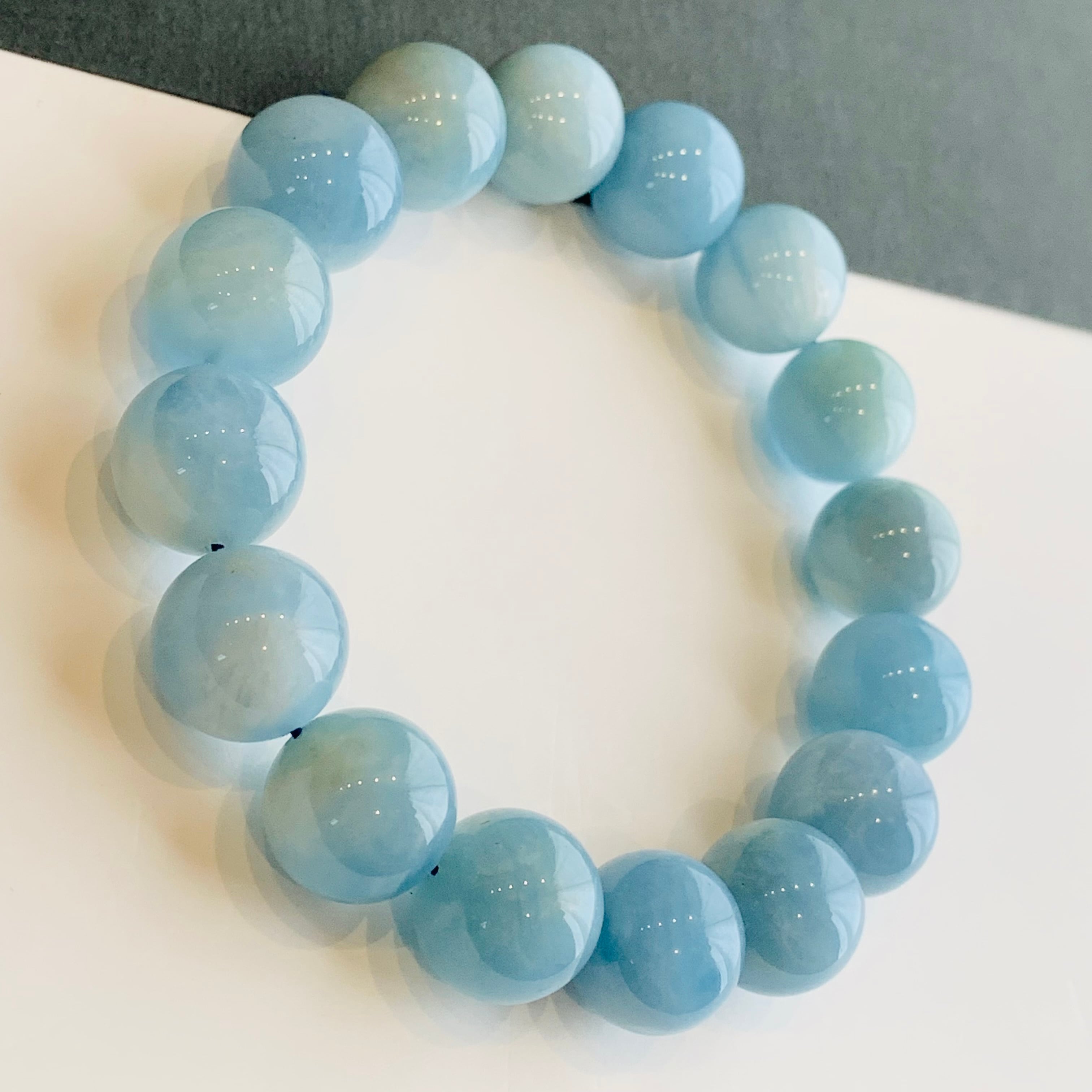 アクアマリン 天然石 ブレスレット パワーストーン 大玉14.5㍉ Y 127