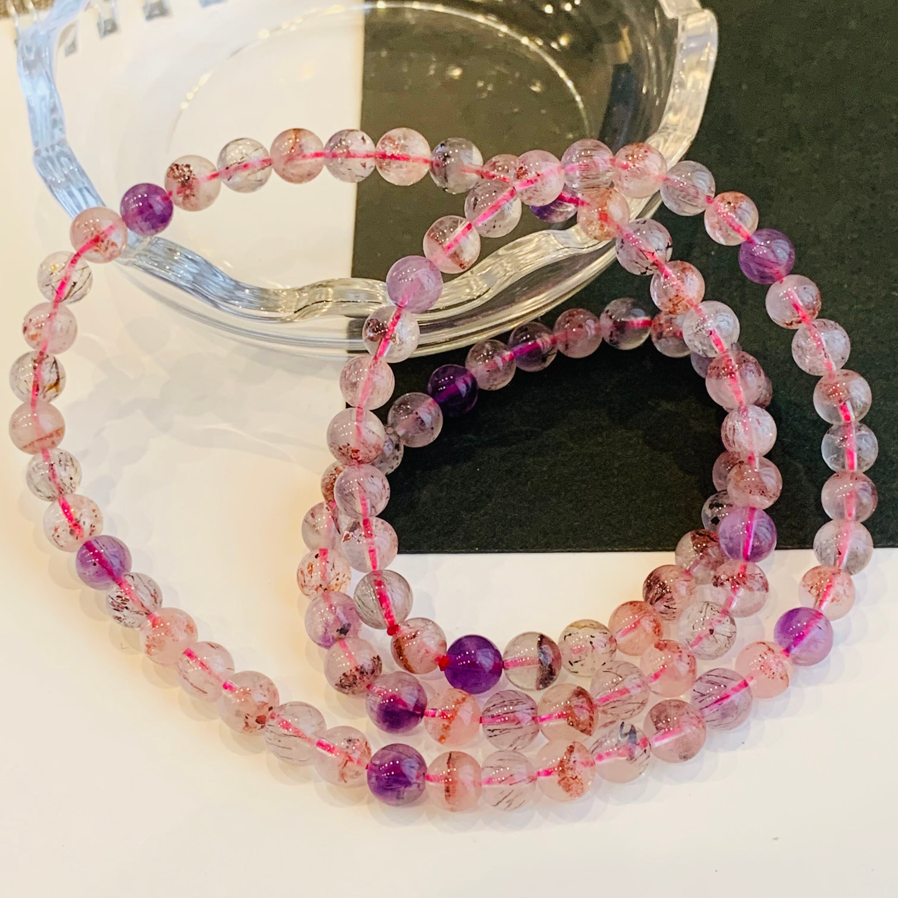 スーパーセブン 水晶ブレスレット 3連 6mm 天然石 パワーストーン 72-1