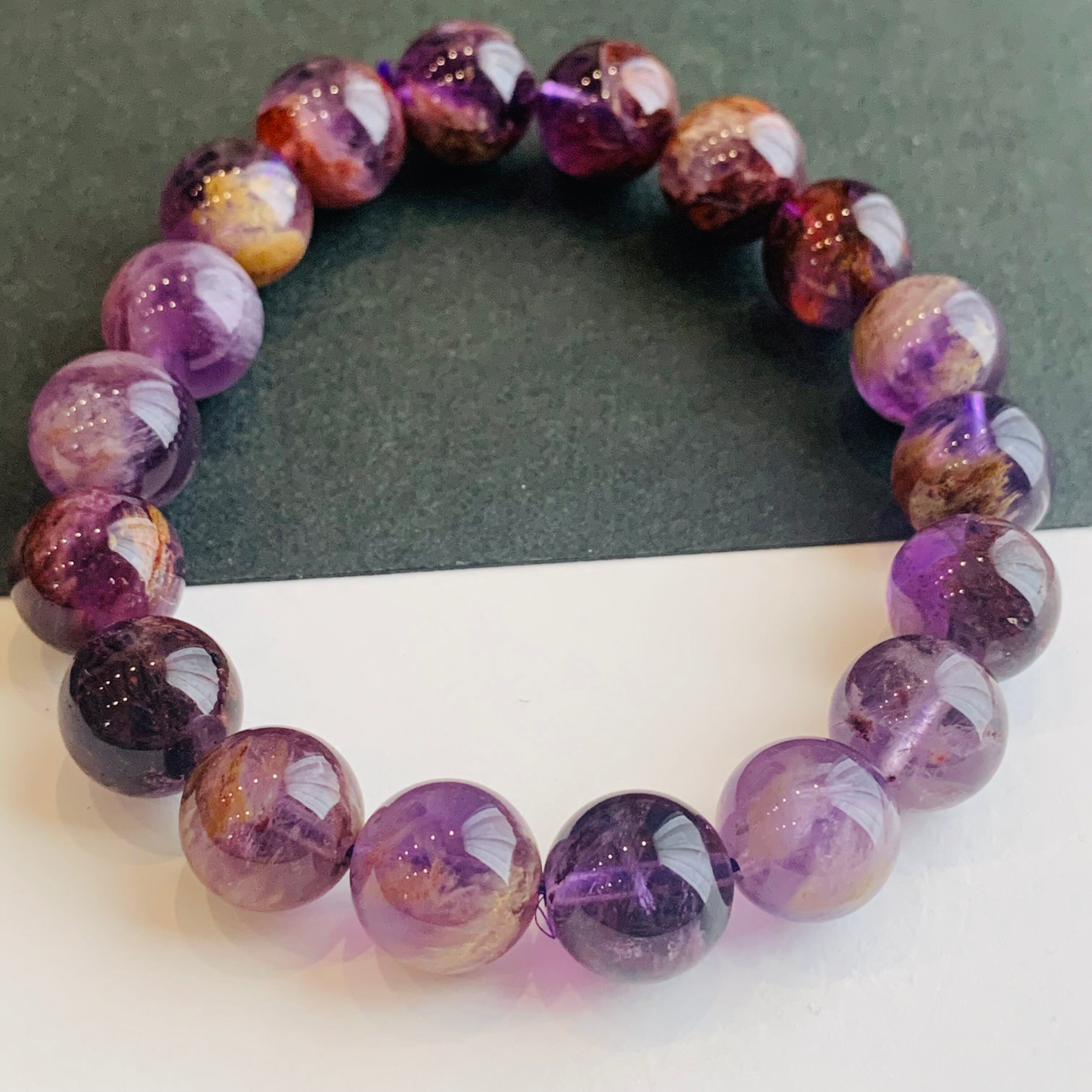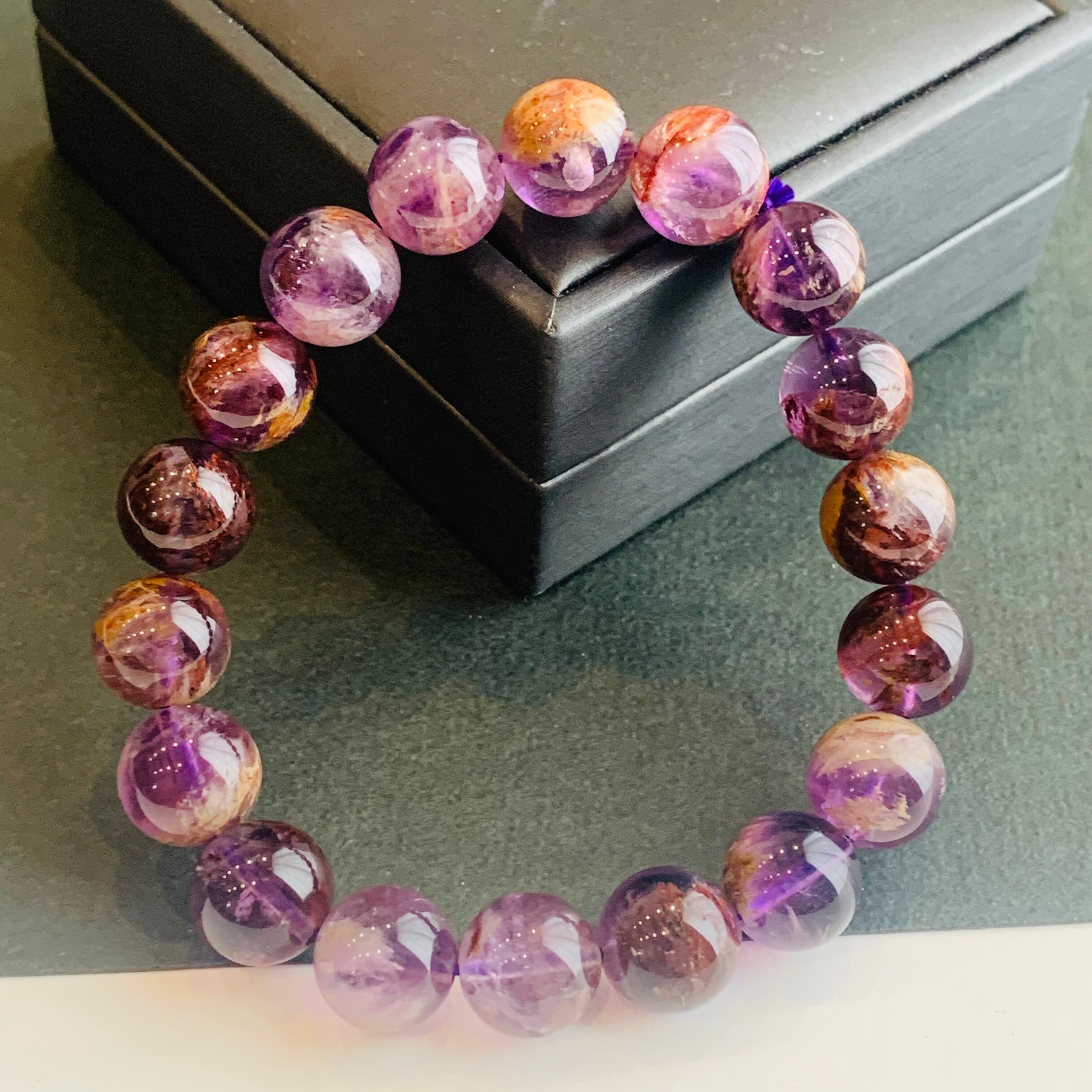 ガーデンクォーツの様に他鉱物を内包したアメジストで、白や赤褐色のアクセントが入った紫色は神秘的!