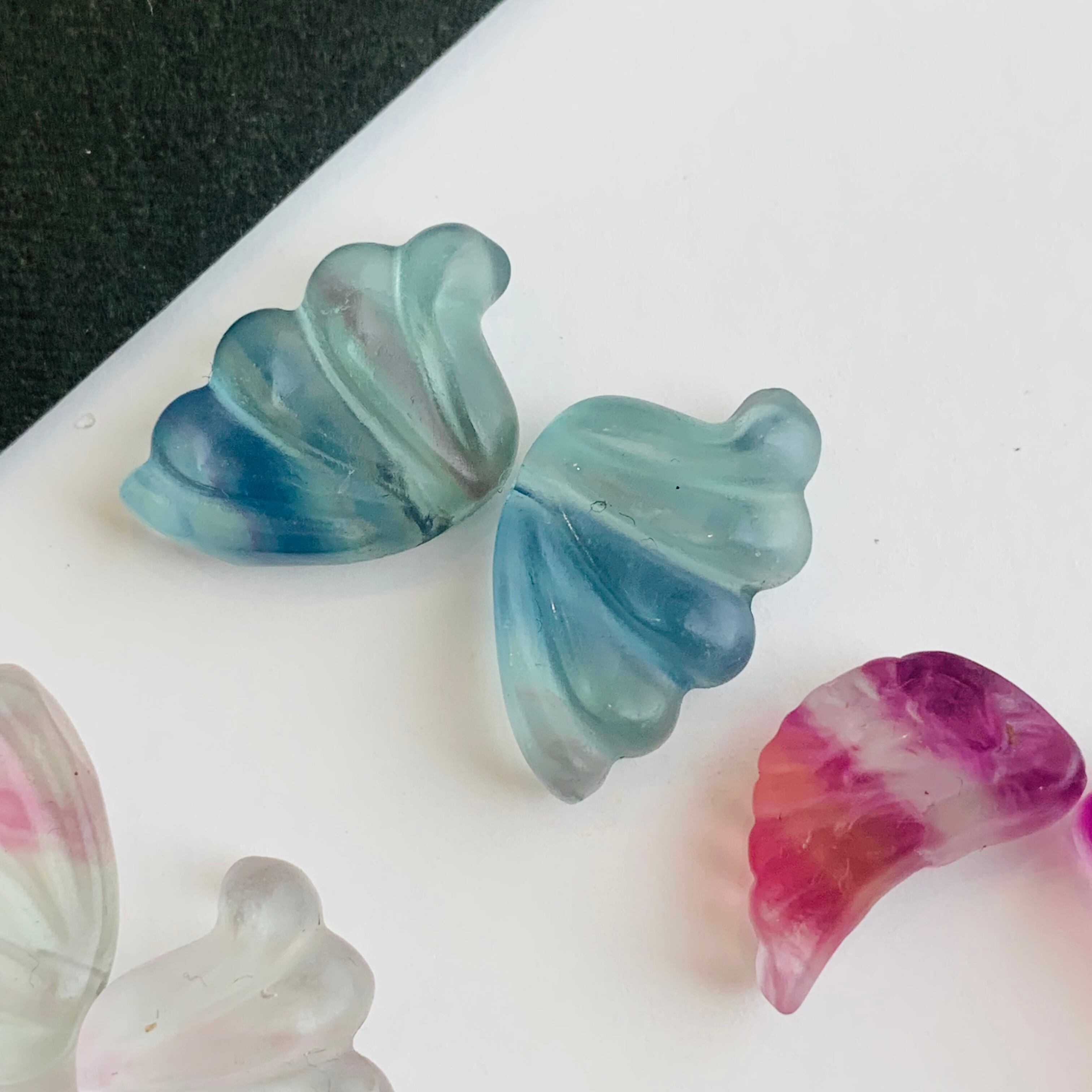フローライト バイカラー パワーストーン 蝶、天使の羽根 6ペアセット E32