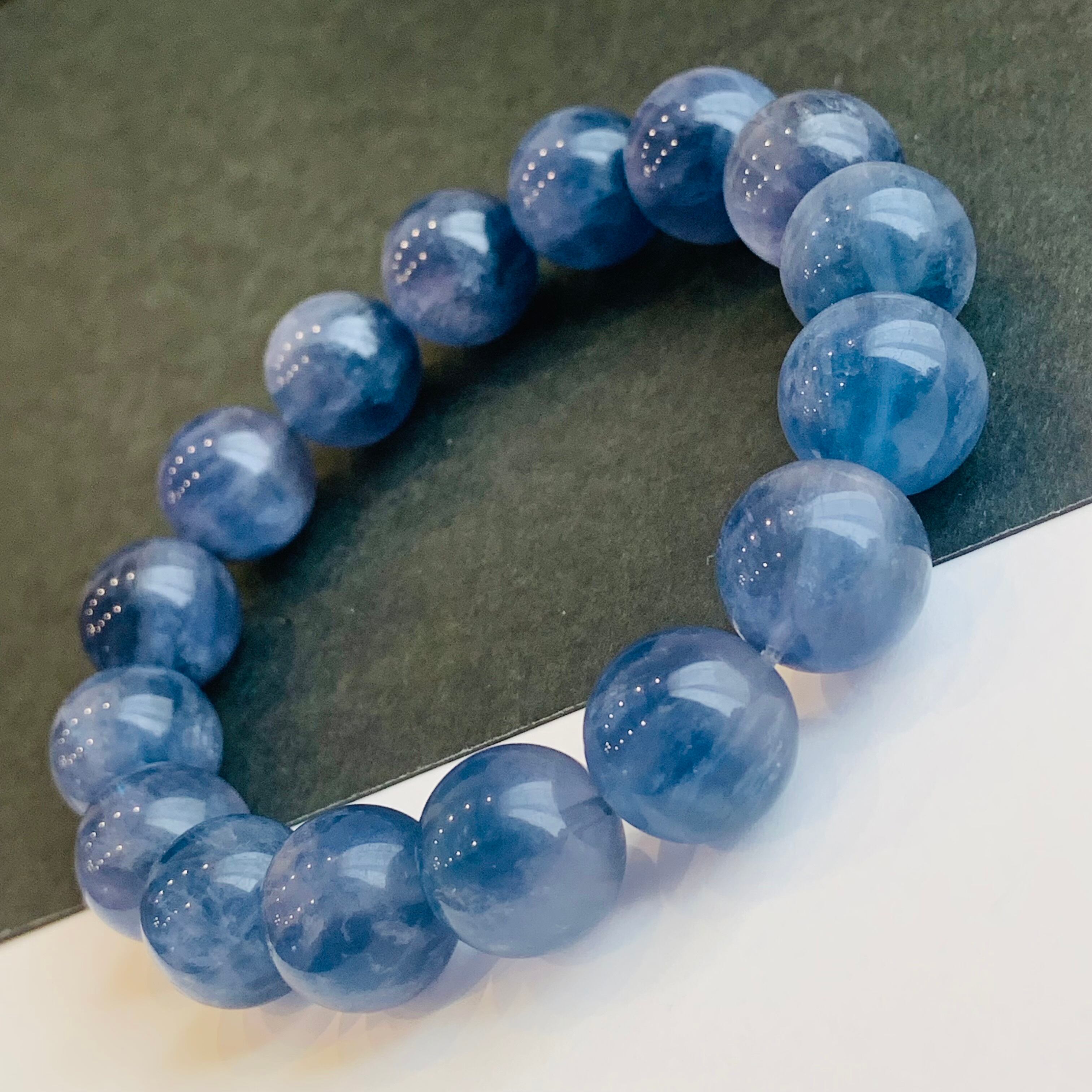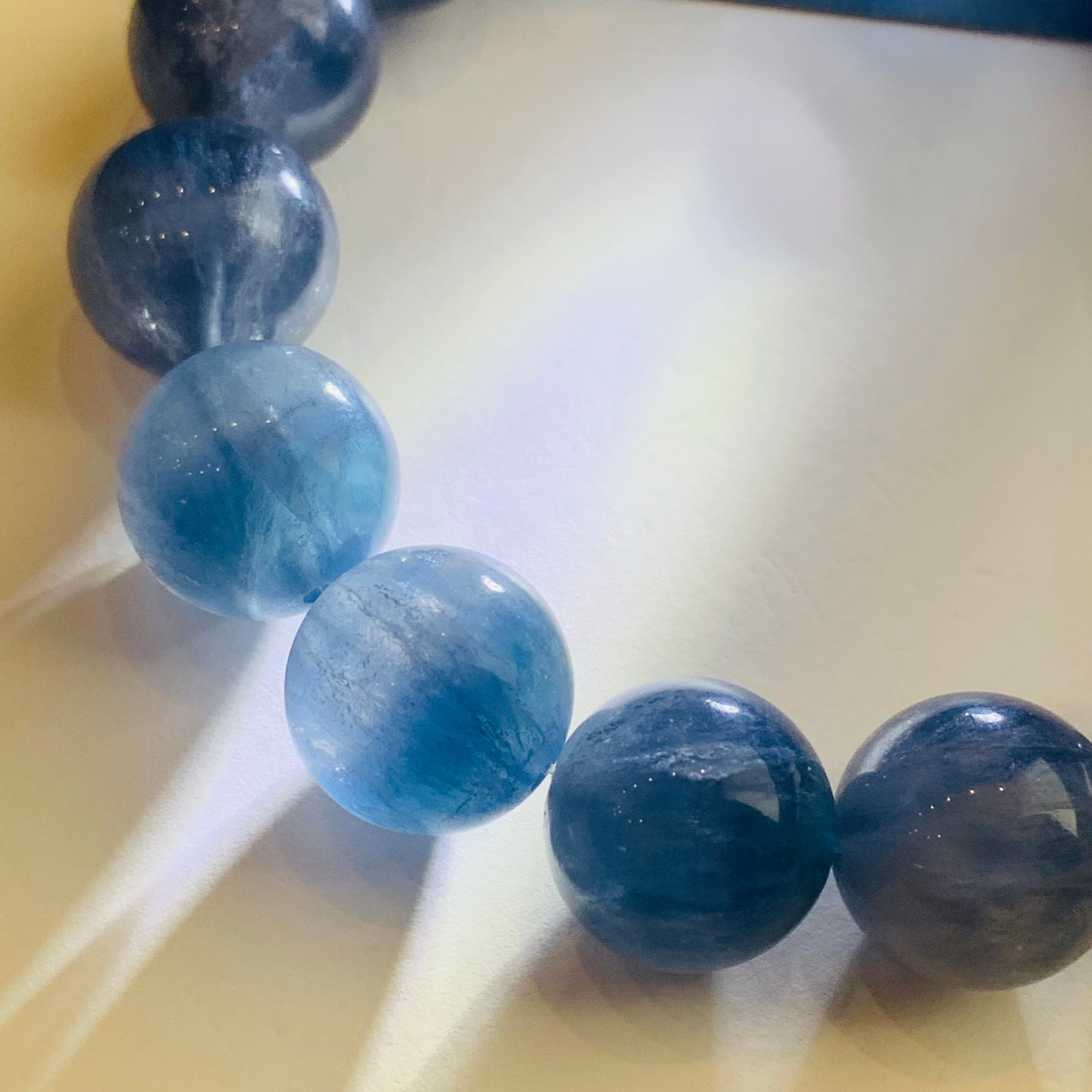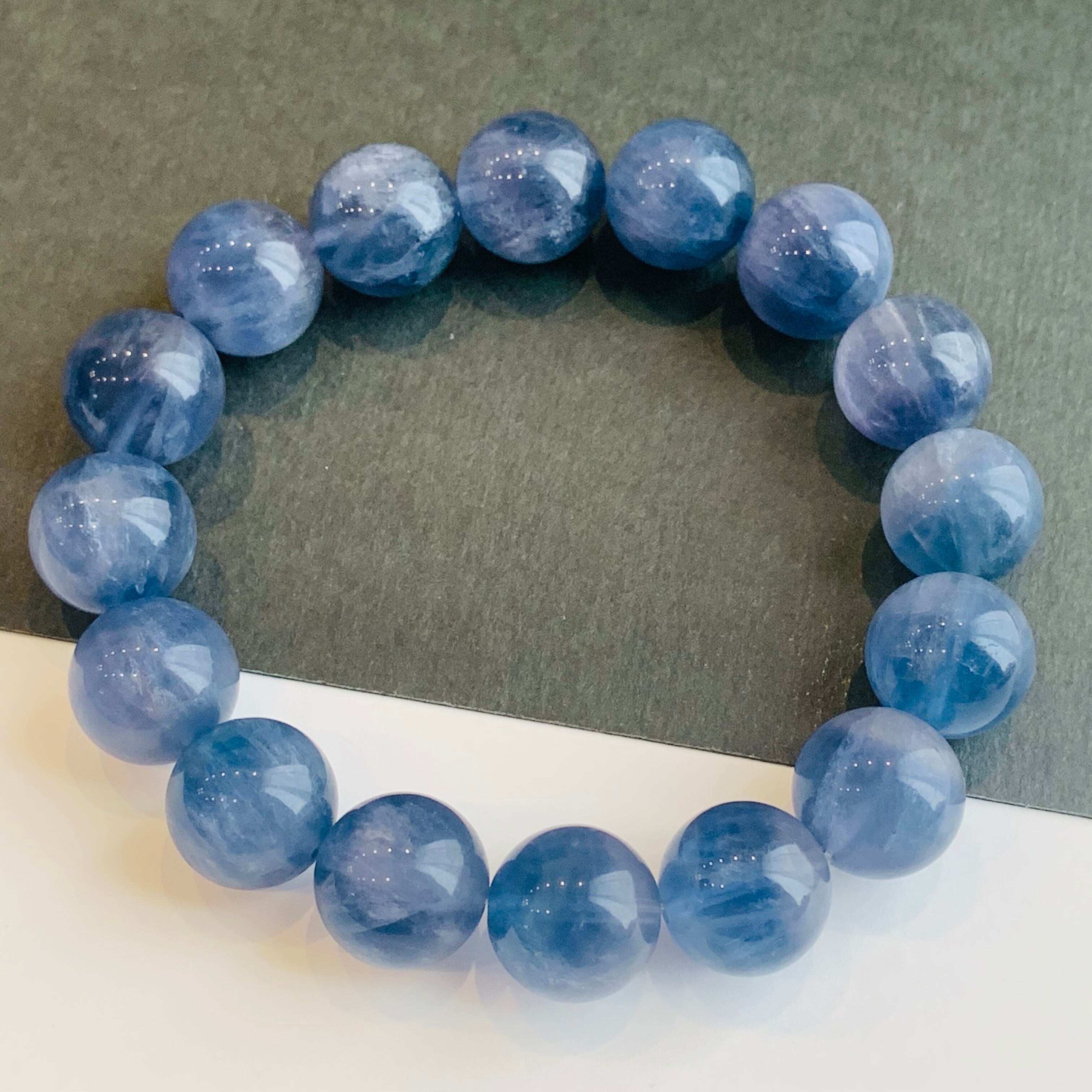 ブルーグリーンフローライト ブレスレット 14ミリ珠 バイカラー 希少 G1