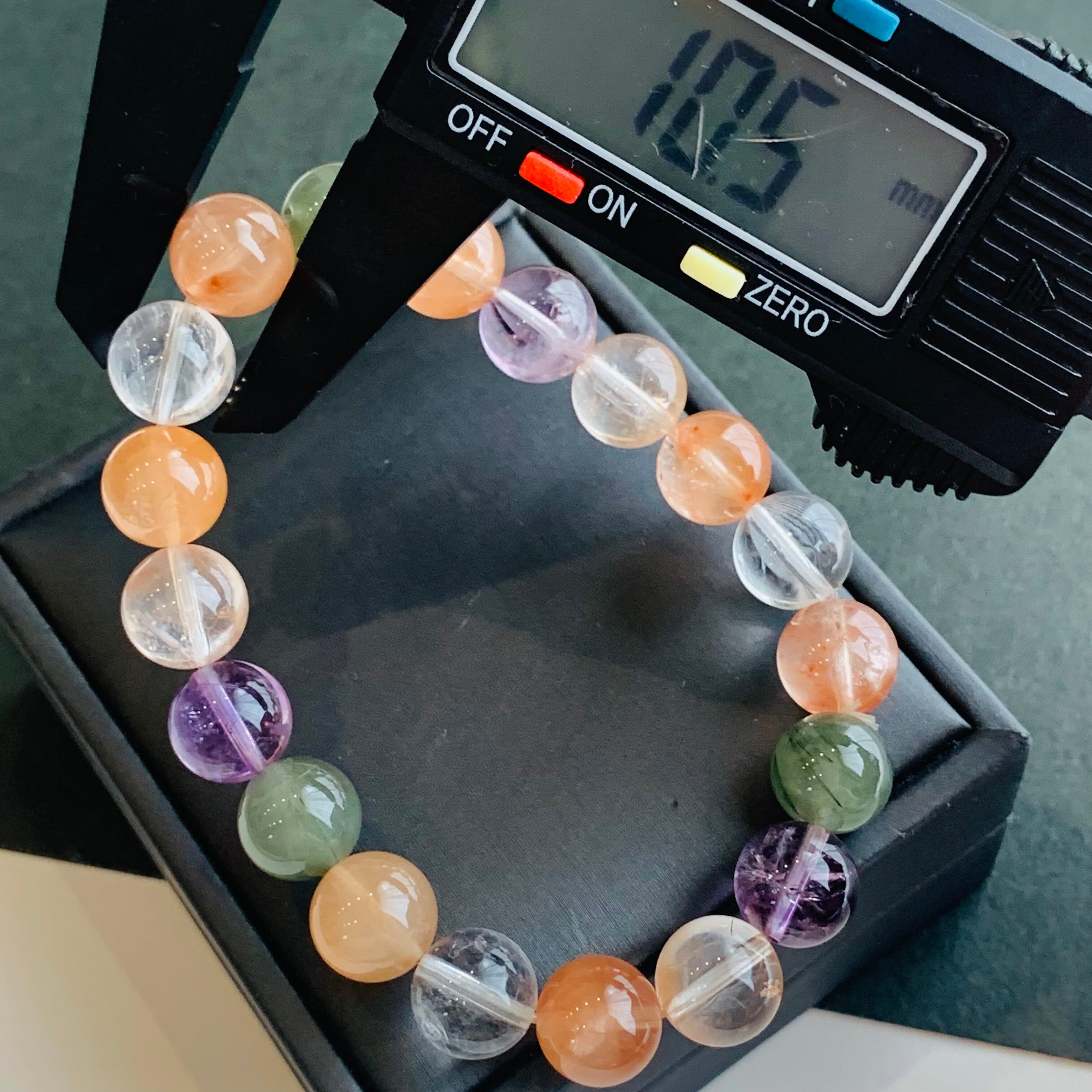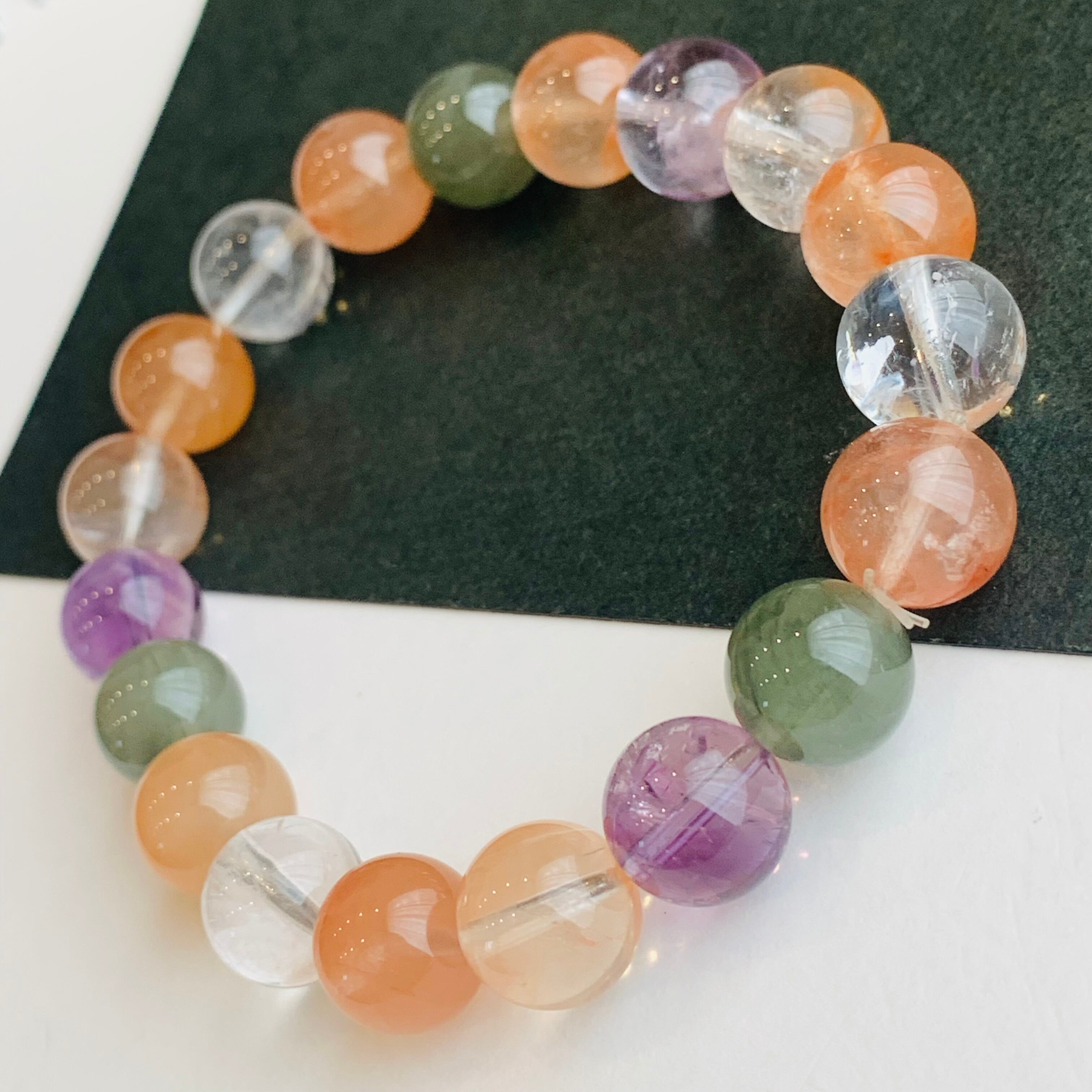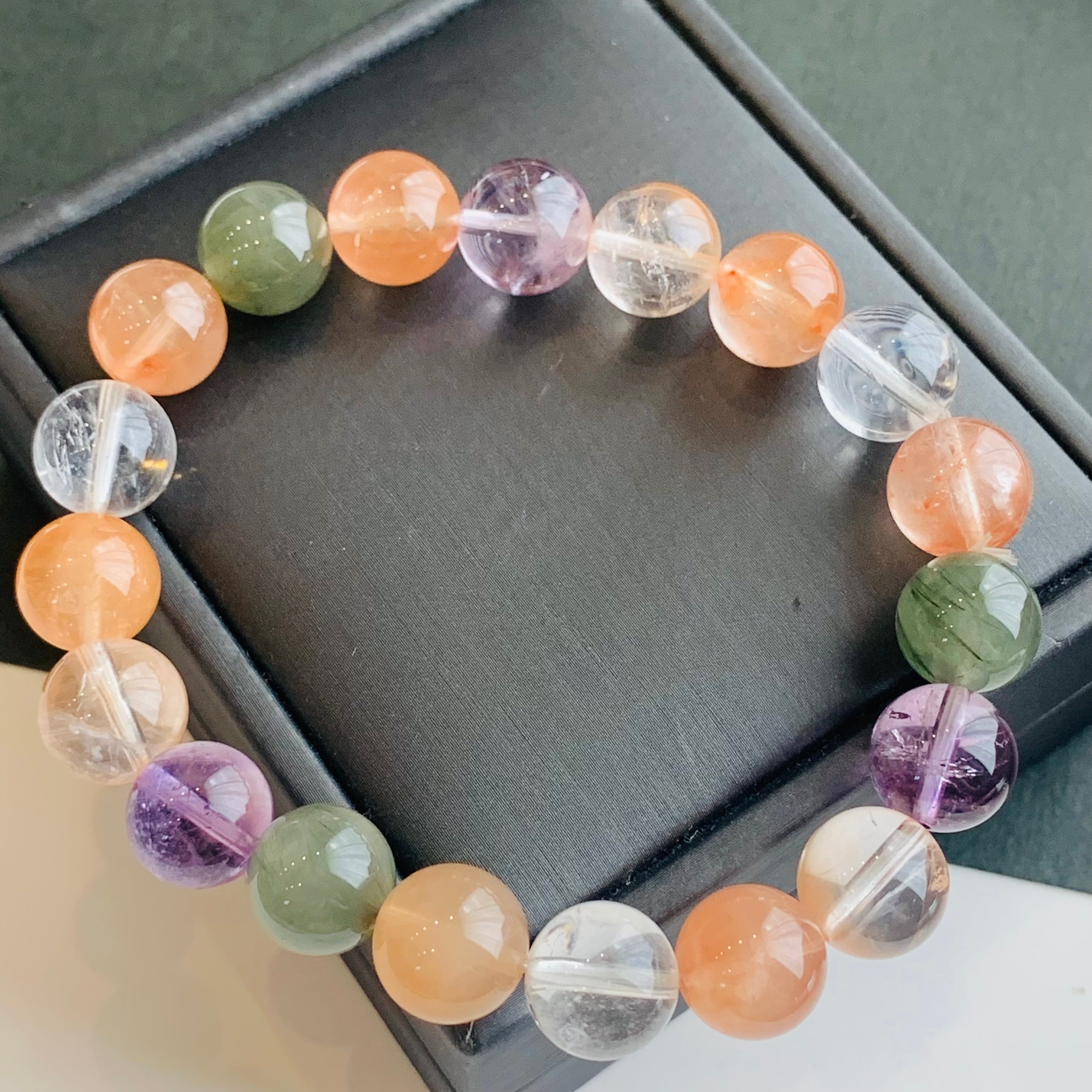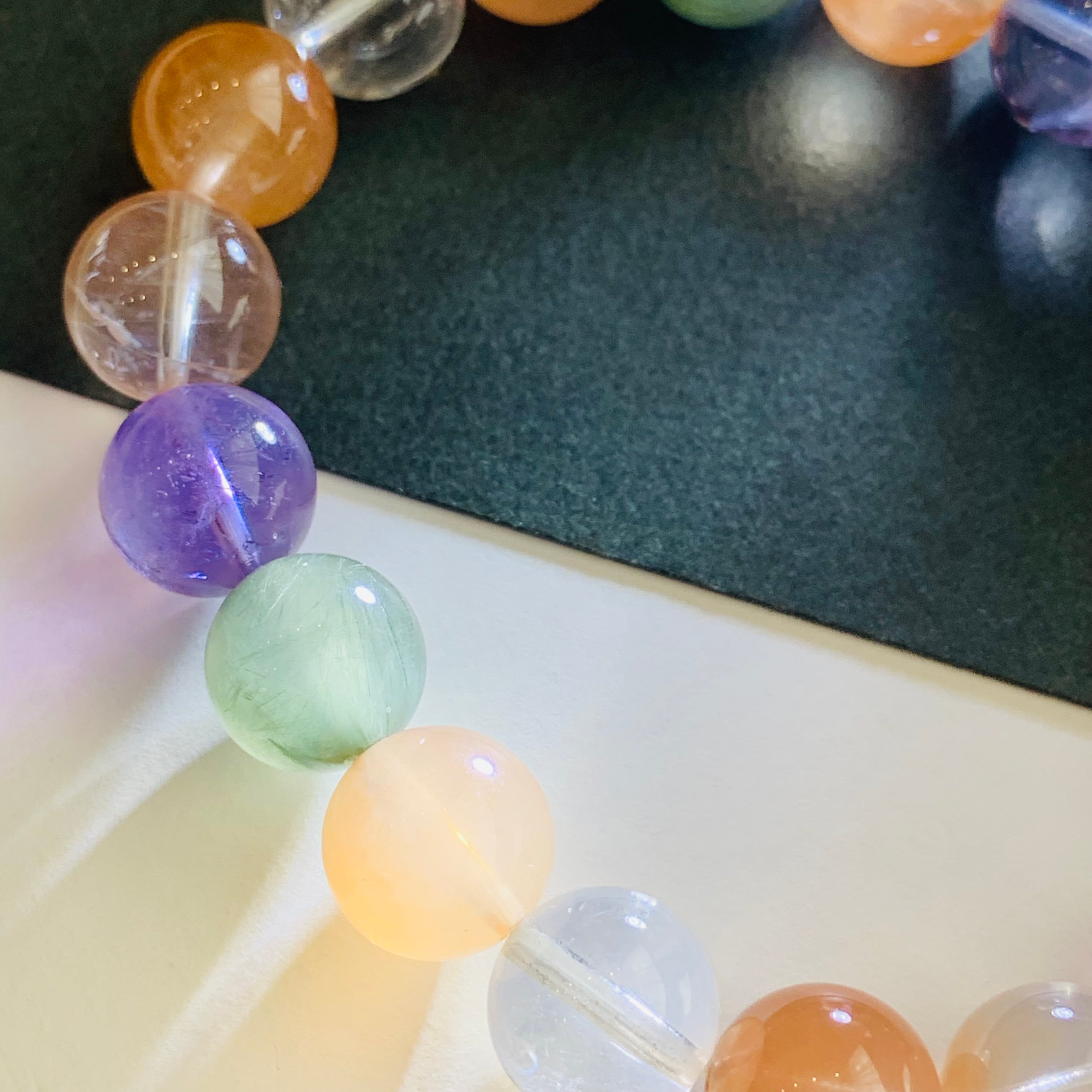 福禄寿は赤黄緑色のラビットヘア水晶です