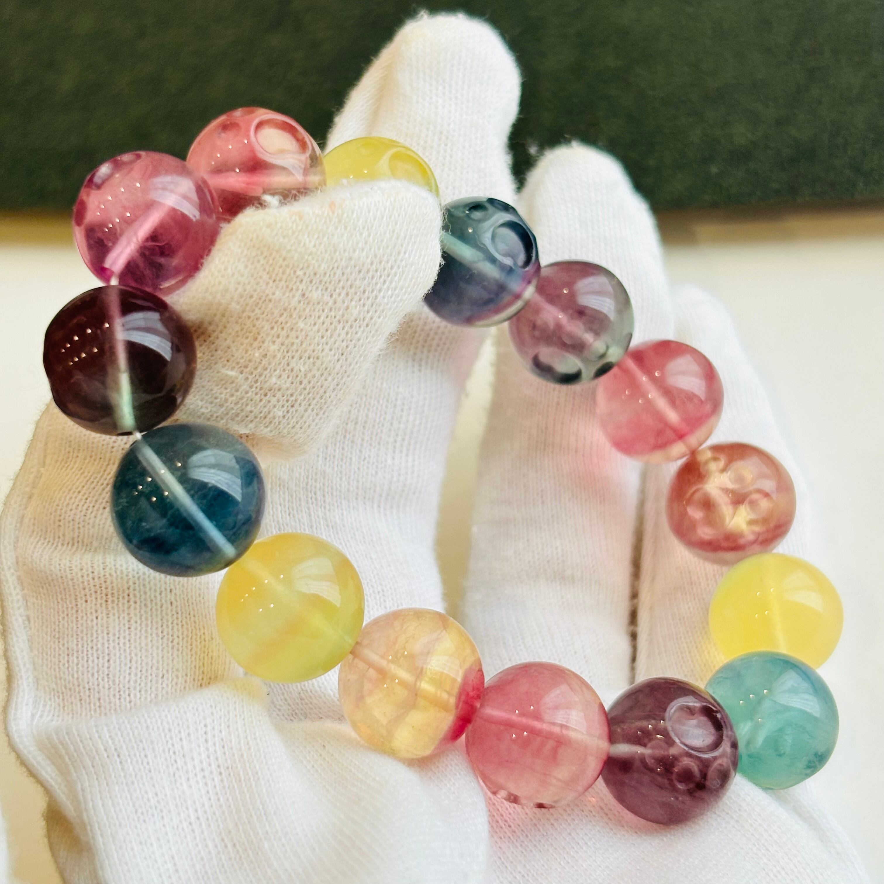 フローライト ブレスレット 天然石 パワーストーン 肉球彫刻 K-4
