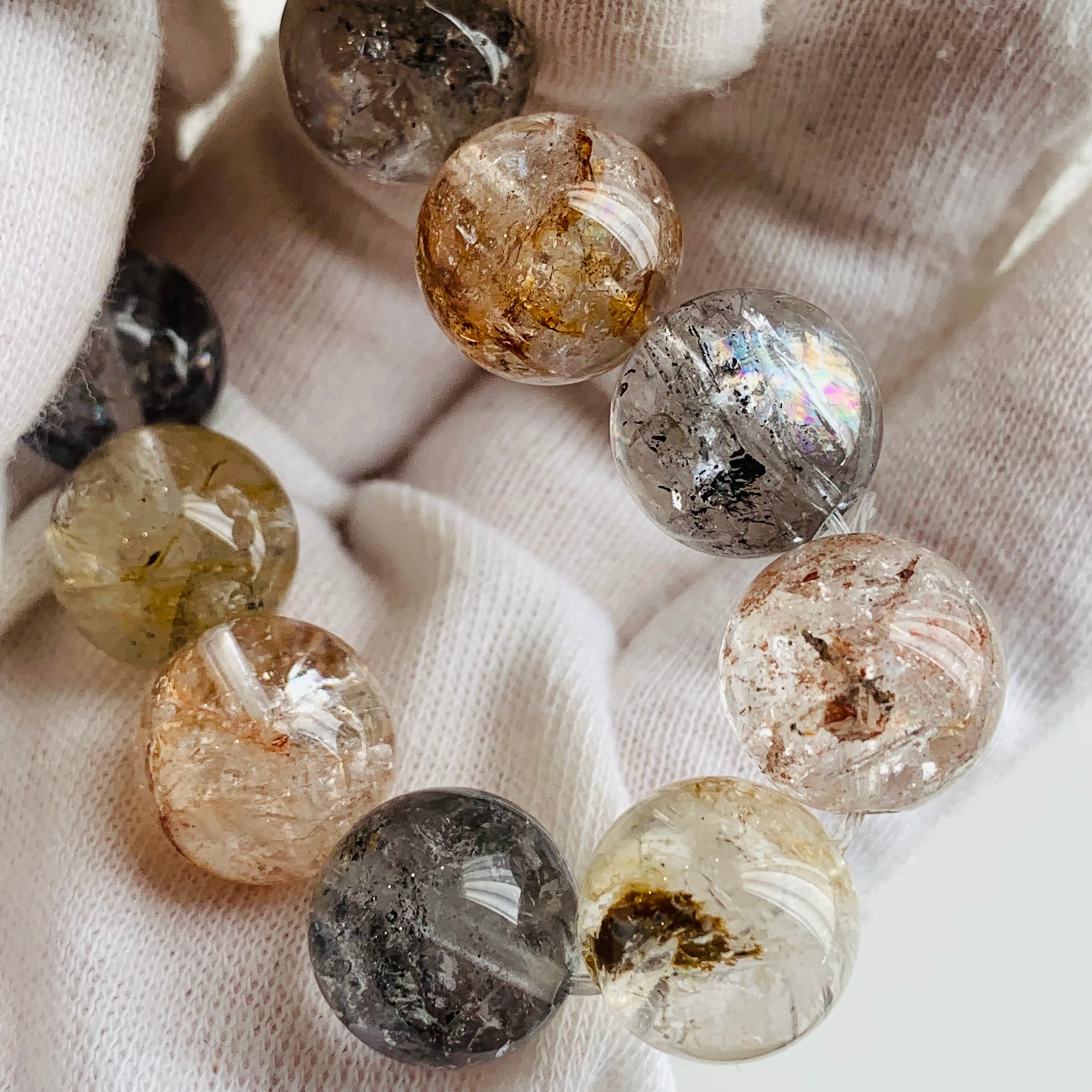 ハーキマーダイヤモンド オイルイン ブレスレット 虹入り パワーストーン 566