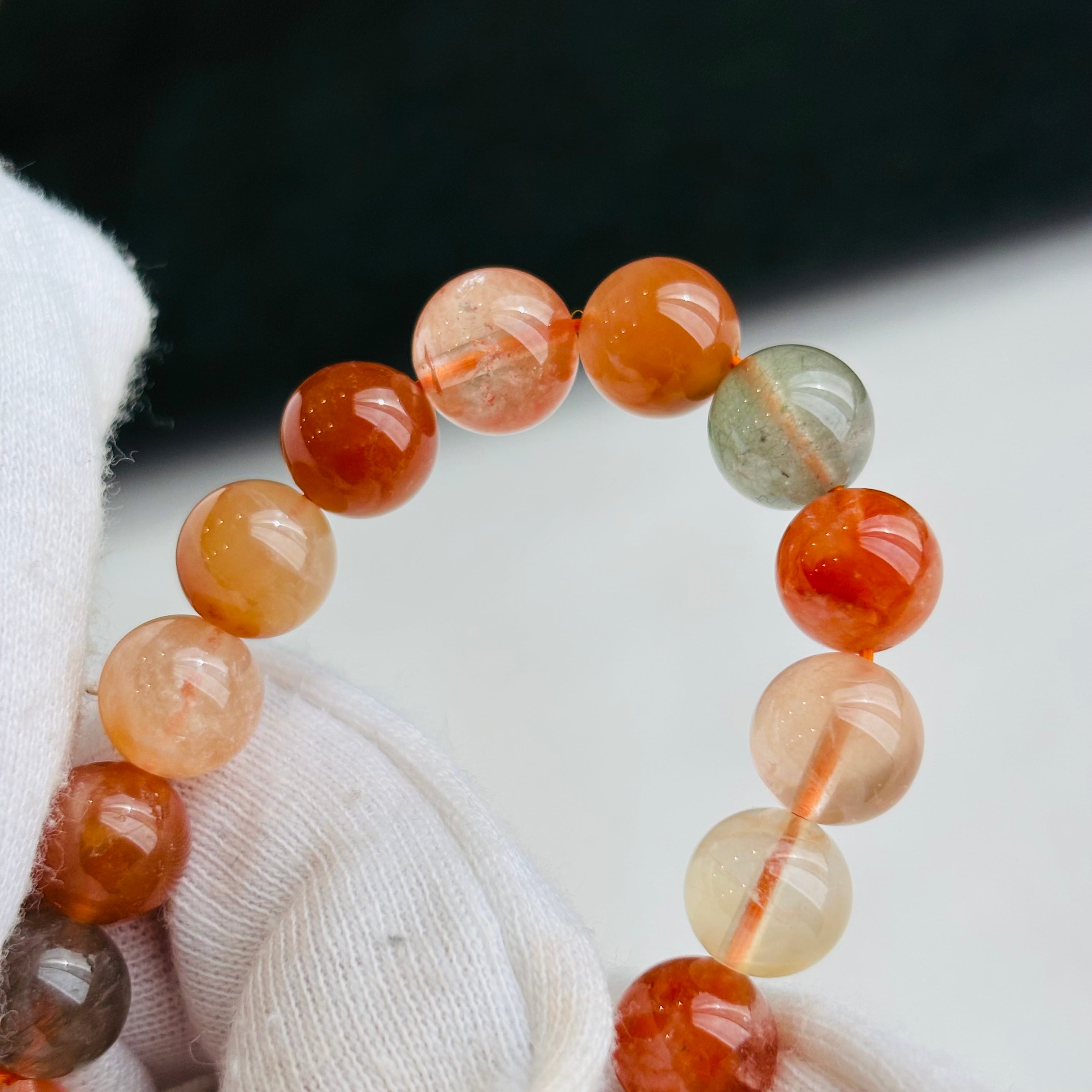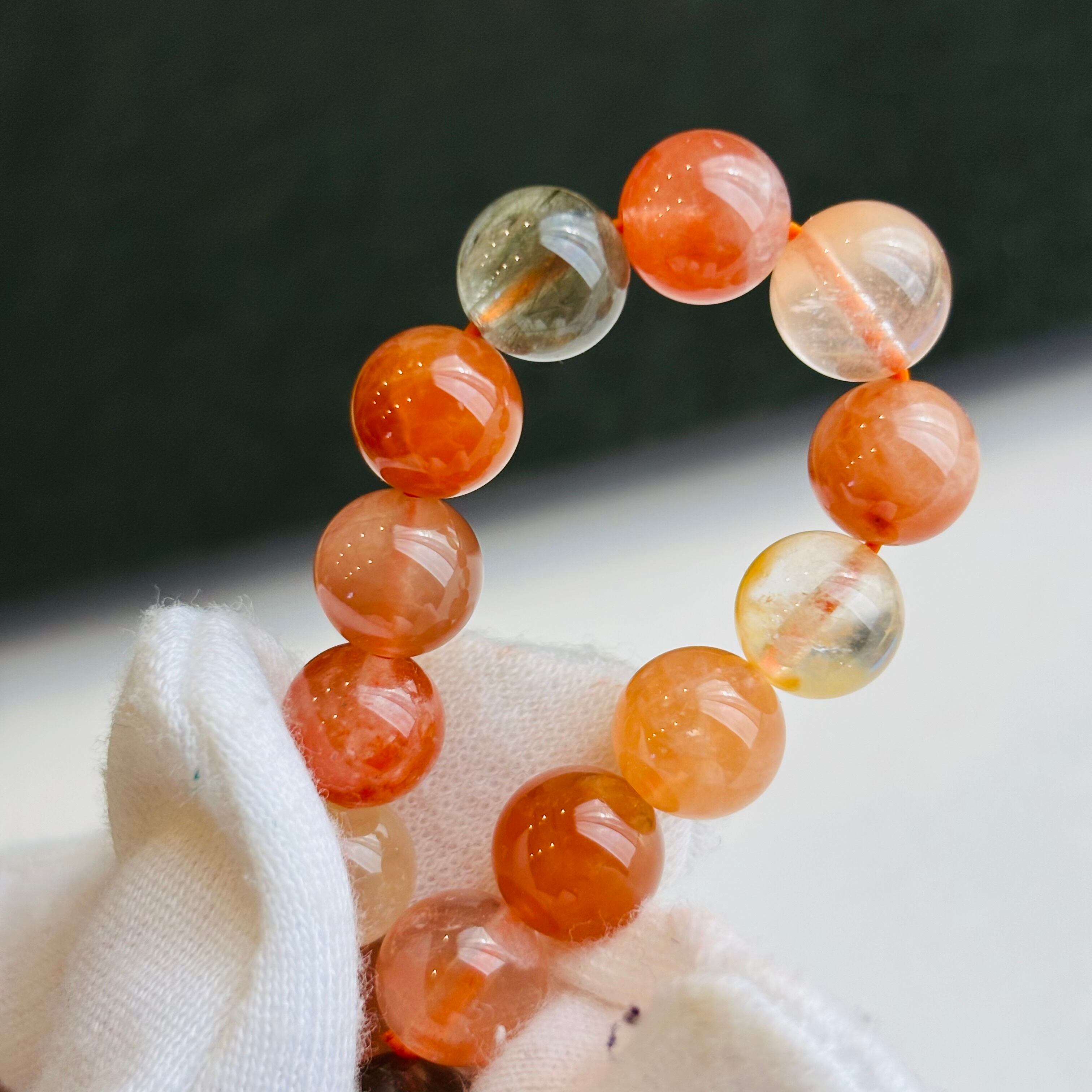 福禄寿は赤黄緑色のラビットヘア水晶です