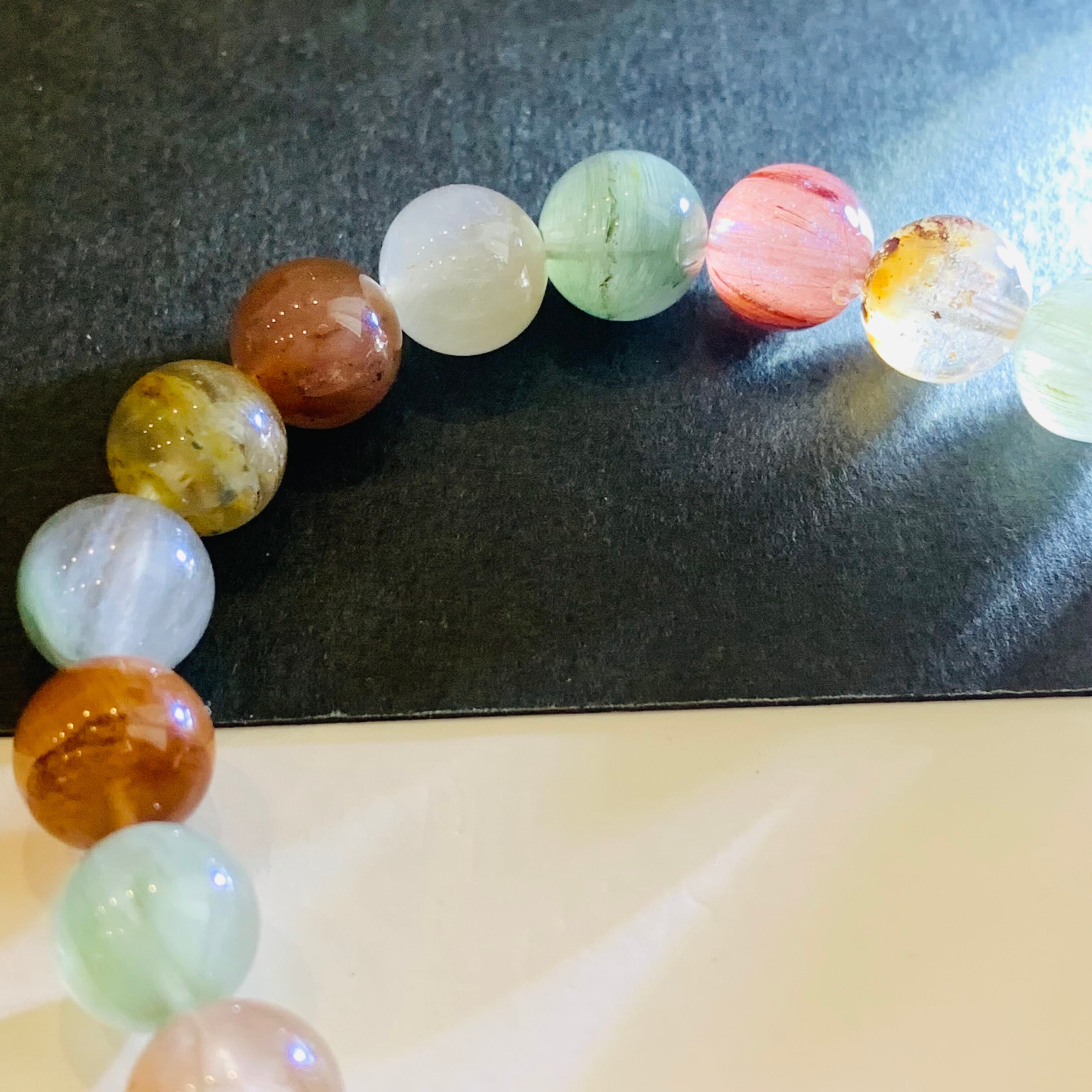 福禄寿は赤黄緑色のラビットヘア水晶です