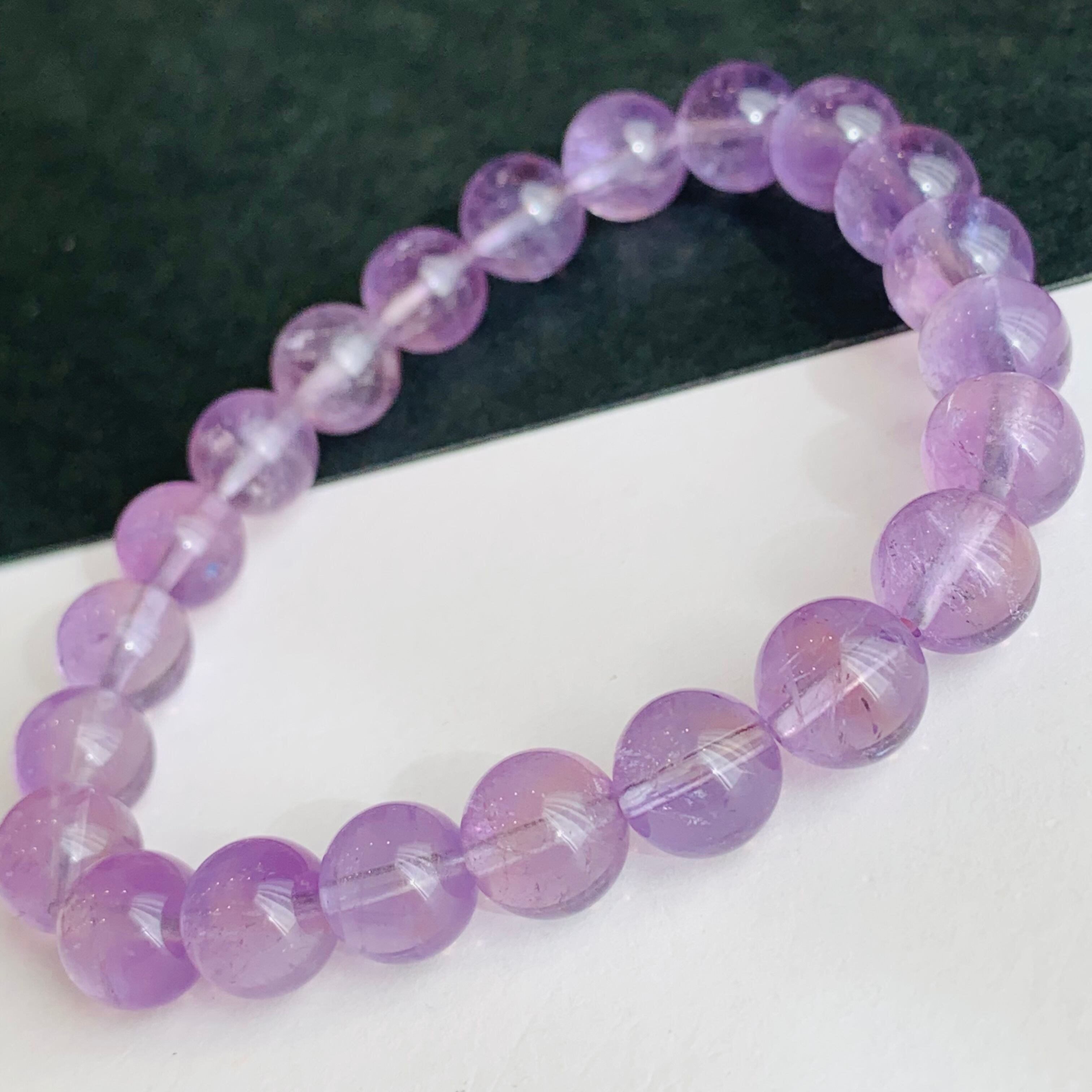 虹入りラベンダーアメジスト 紫水晶ブレスレット 天然石 パワーストーン B4