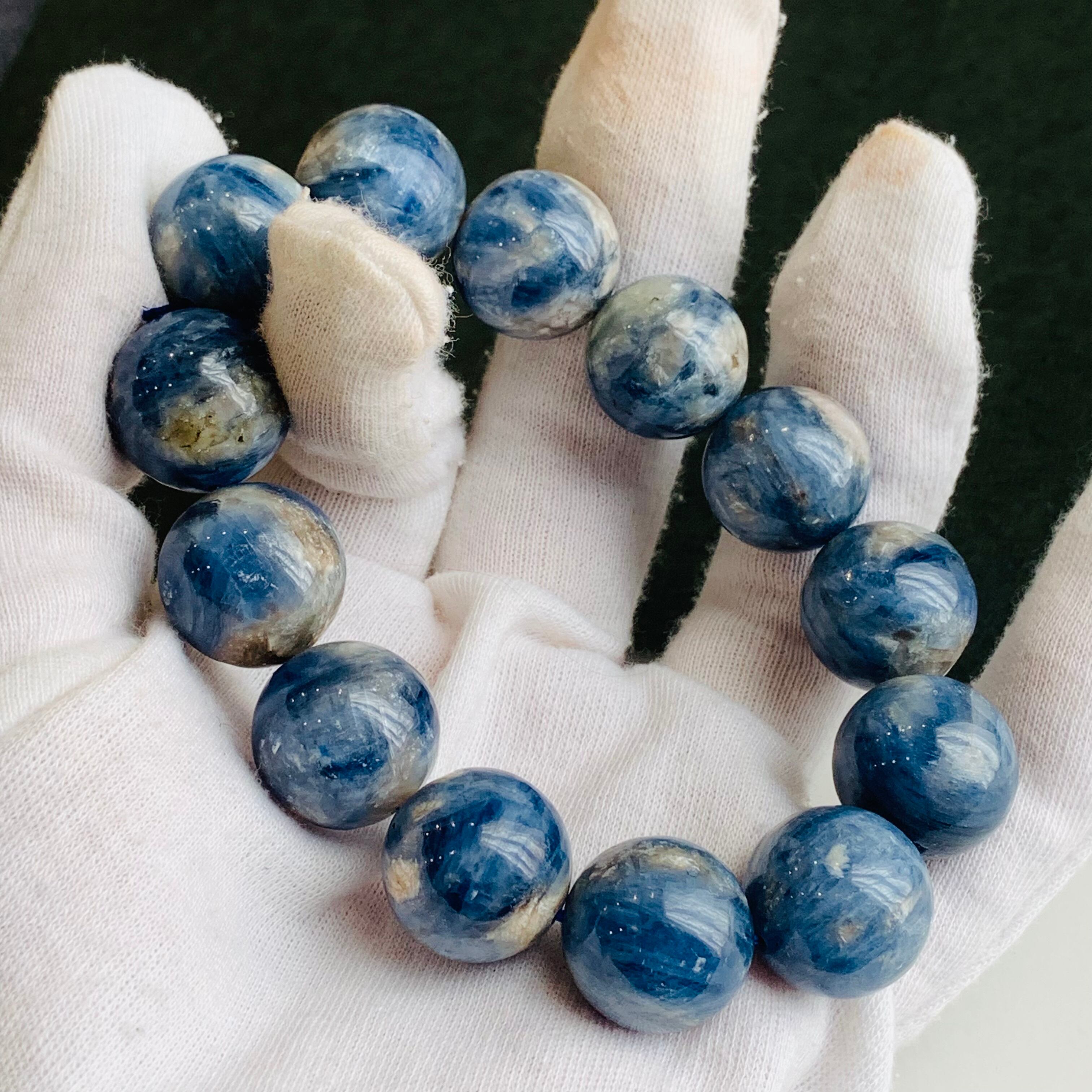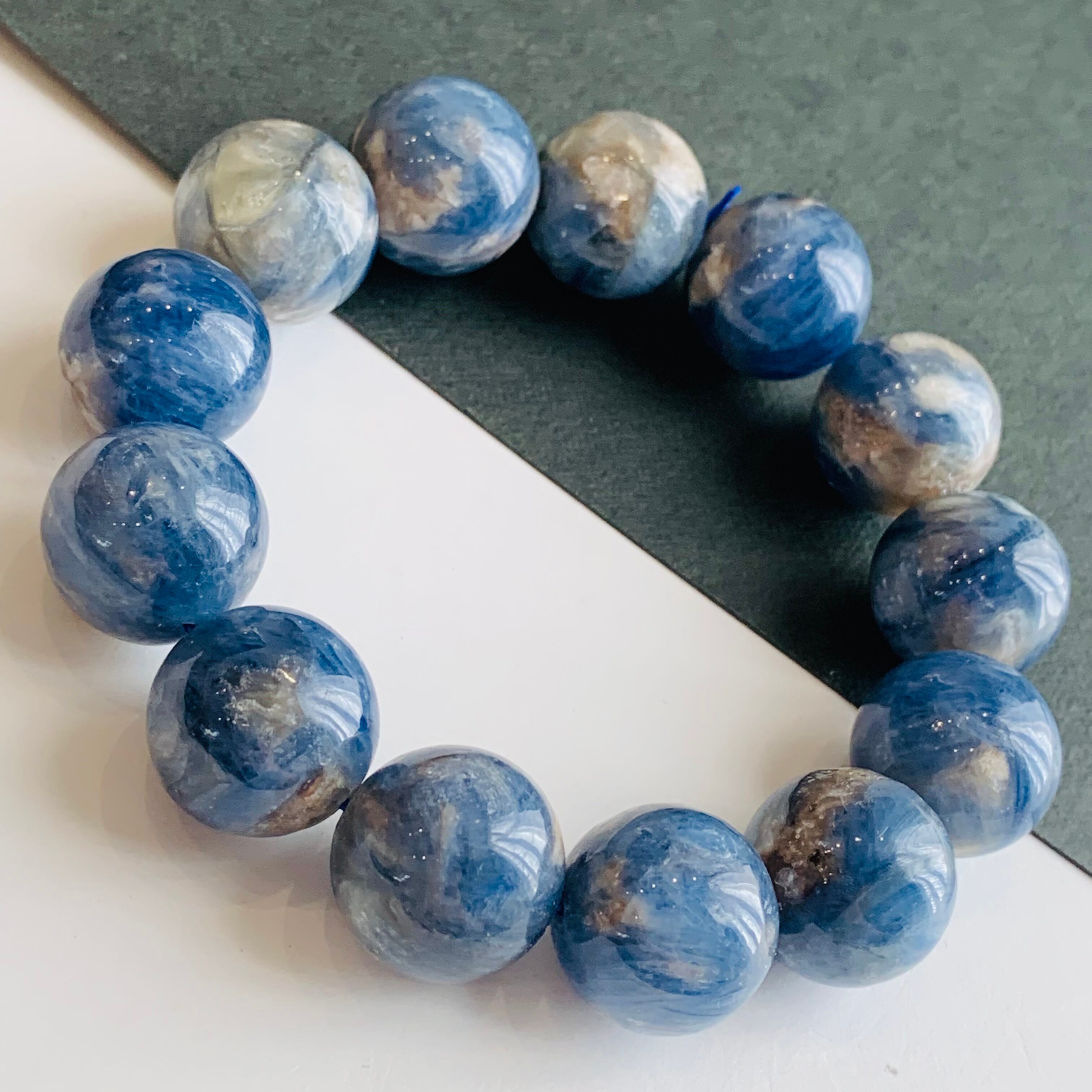 マイカインカイヤナイト 藍晶石 ブレスレット 天然石 17㍉パワーストーンB17