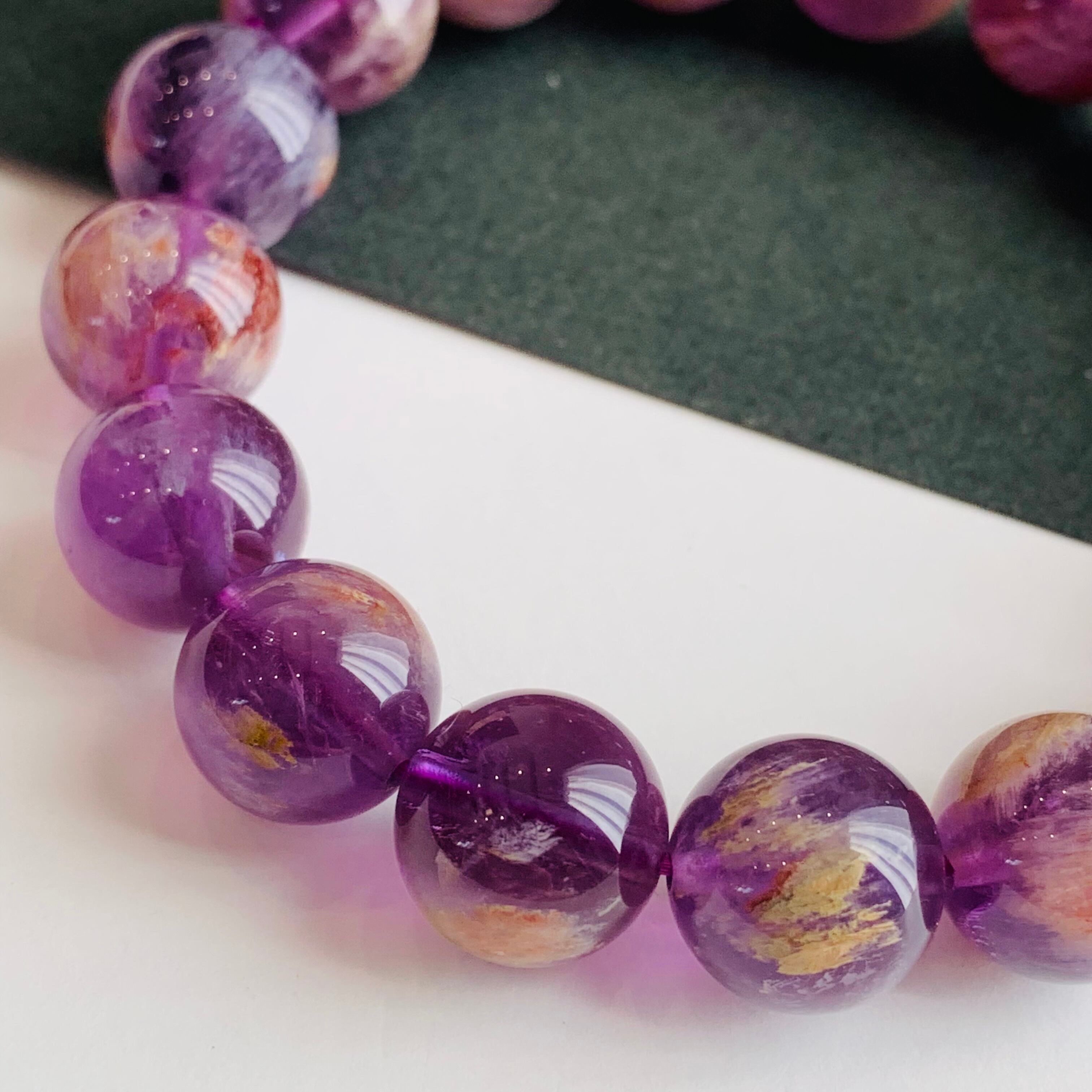 ガーデンクォーツの様に他鉱物を内包したアメジストで、白や赤褐色のアクセントが入った紫色は神秘的!