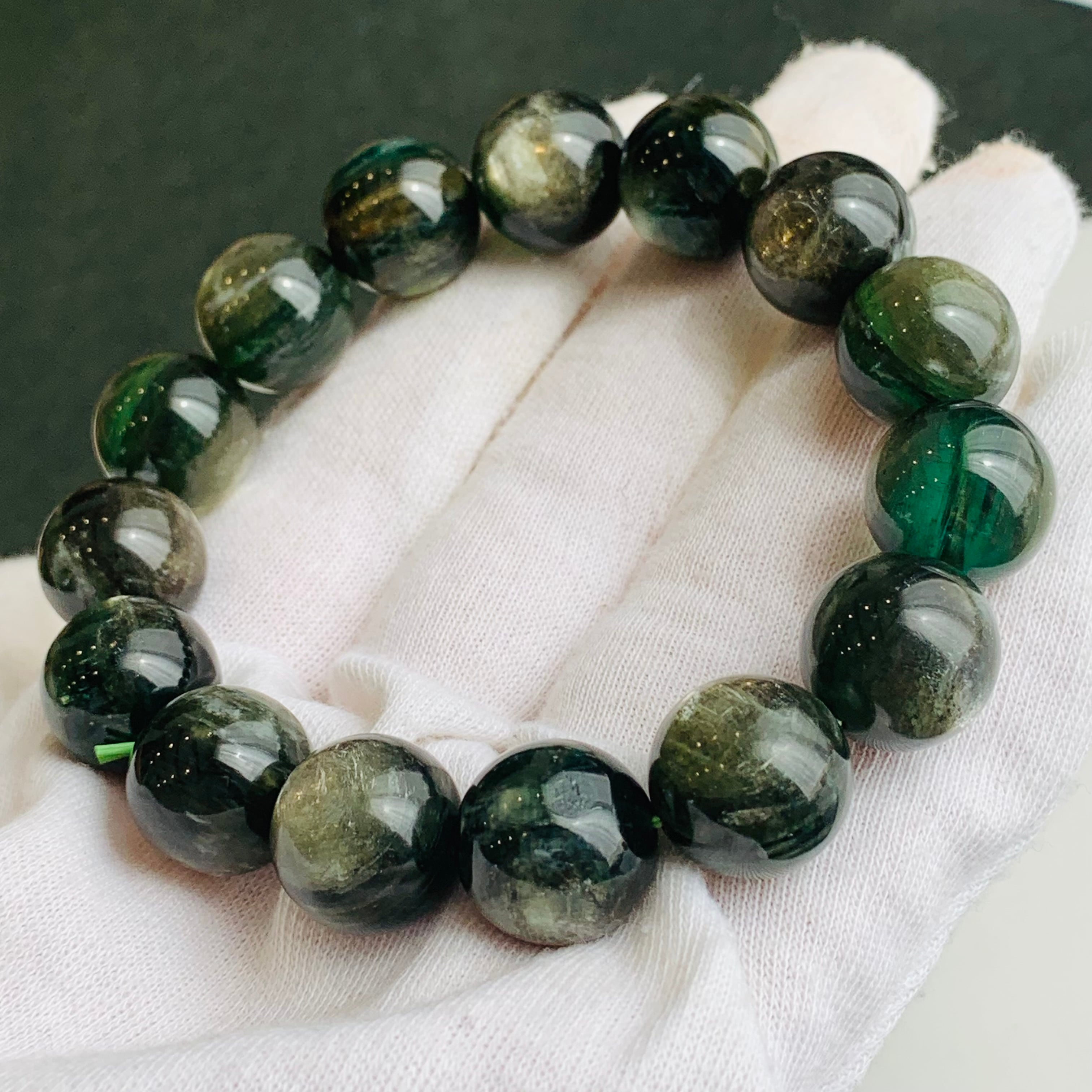 グリーンマイカ ブレスレット 希少 パワーストーン 14ミリ珠 B21