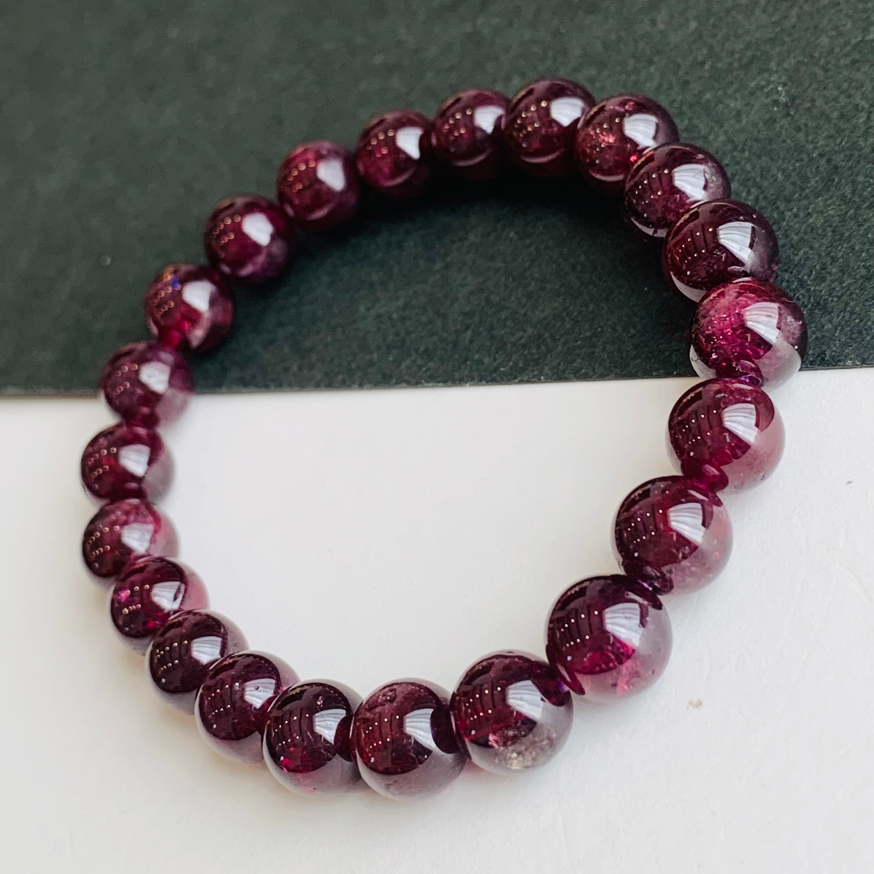ガーネットブレスレット 天然石 紫 7.8ミリ珠 パワーストーン B39